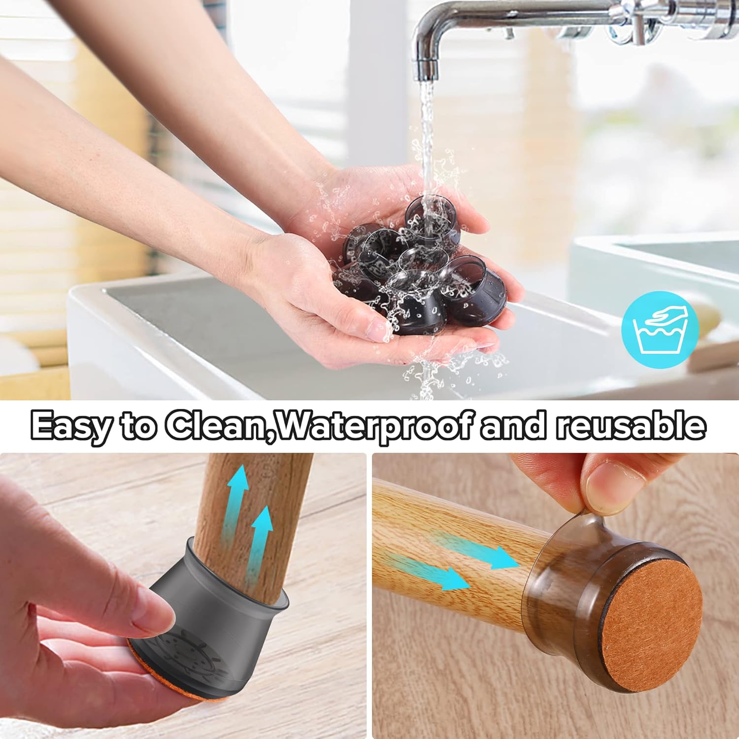 - ✅【Latest Upgrade】Compared with most of the traditional 1mm furniture pads on the market, our chair leg floor protectors are made of 2mm thick silicone, which will never be damaged, durable. The chair leg protectors will not change color when stretched. Inside of the inner sleeves are particles with anti-slip, which will firmly fix the chair and never make the covers fall off. Felt pads at the bottom make your furniture move silently and smoothly along floors without leaving marks and noise.