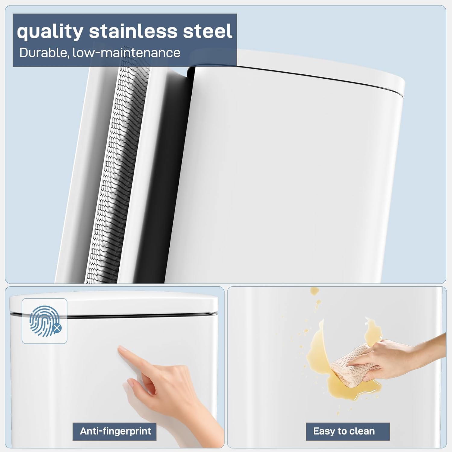 - 【WON'T DISTURB YOU】Using ABS hydraulic deceleration technology, the trash can lid can be slowly and gently closed when the pedal is released, without making a lot of noise, and it will not disturb your family when disposing of garbage.