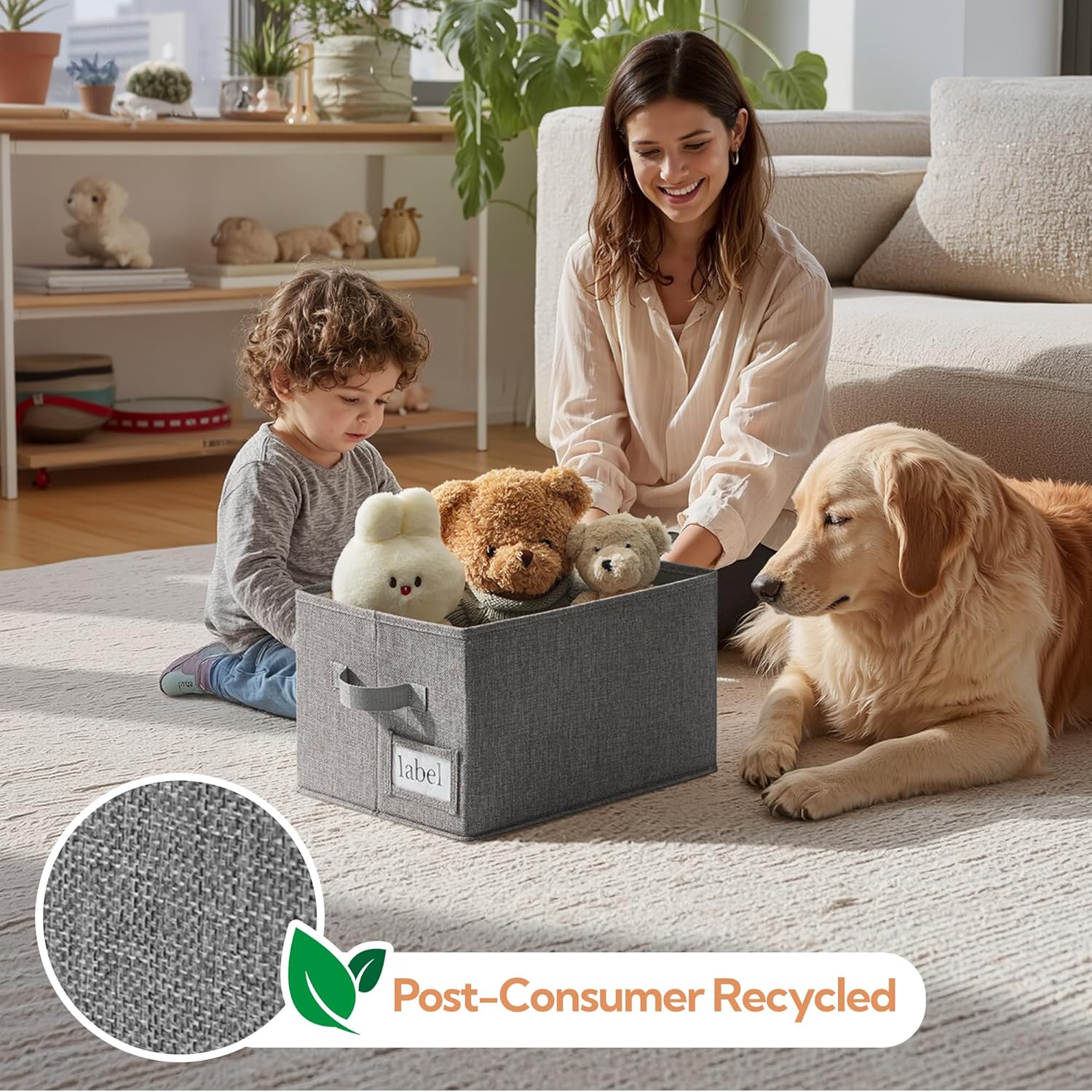 - Practical Design - The decorative storage box comes with 2 handles and is easy to pull or lift, perfect for organizing cabinets, walk-in closets, bookcases and more. Each box also comes with a label for easy identification of the contents. The storage bin is easy to clean, just dust with a soft, dry cloth.