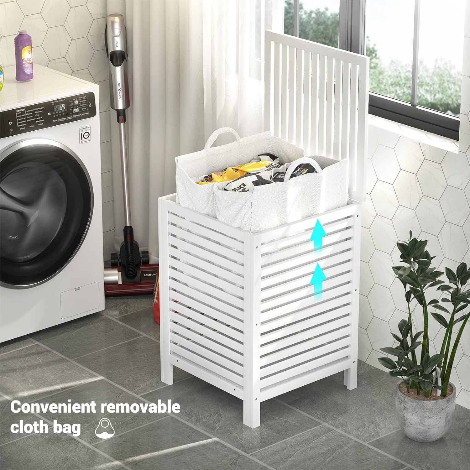 - REMOVEABLE LINER BAG - Stable bamboo construction will outlast loads of laundry, the divided liner bag is removable. When itβs time to do the laundry, just lift the lid and take out the inner bag, the bamboo laundry basket itself can stay where it is, as a decorative detail for any room. Removable liner bag with handles makes it easy to move this laundry basket from room to room. Please do not put the liner bag into the washing machine, it cannot be used as a laundry bag.