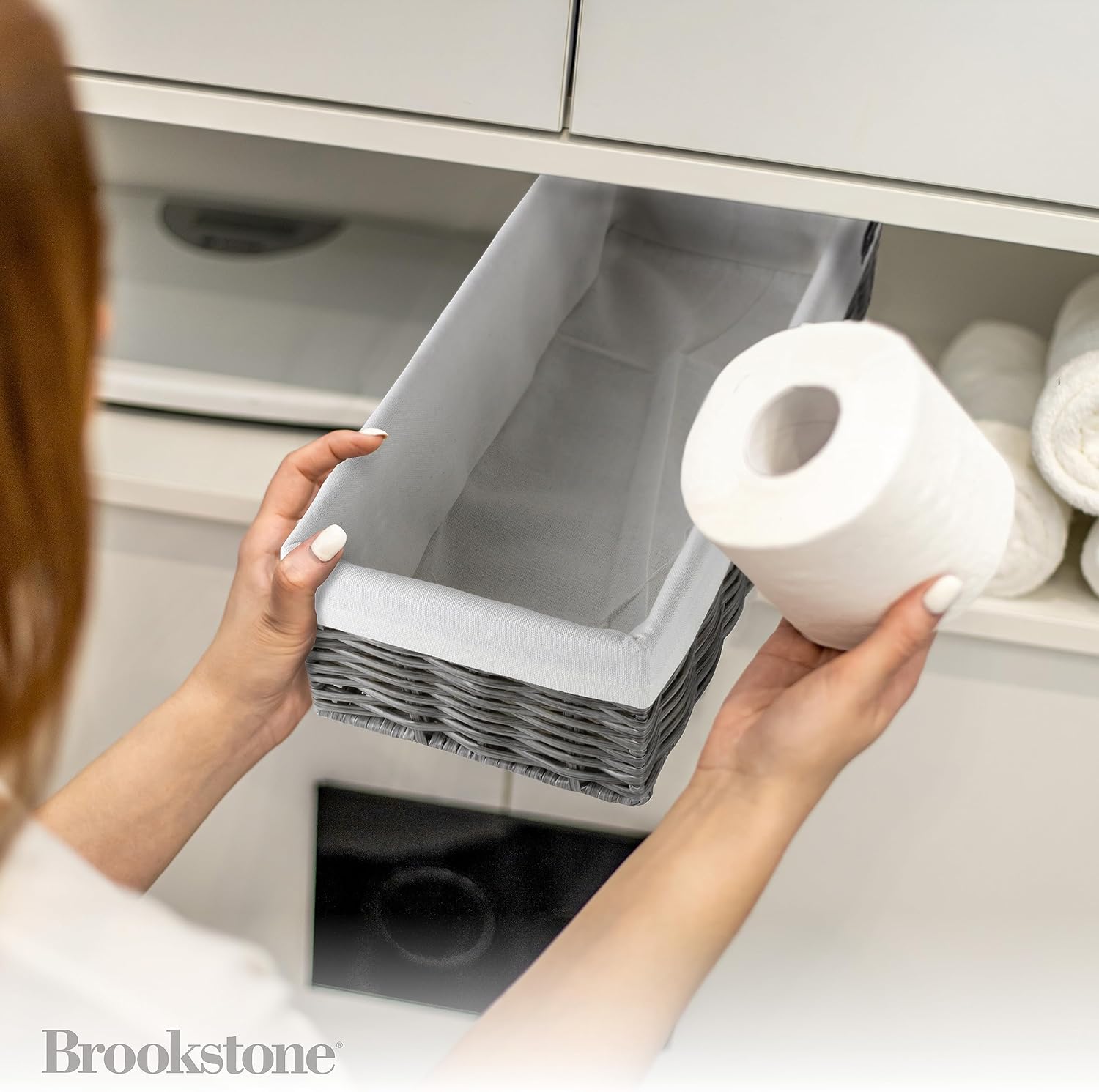 Brookstone Wicker Shelf Storage Basket Decorative Shelf Bin, bathroom organizers and storage, Boho Living Room Decor, Summer Storage 2025-2 Pack