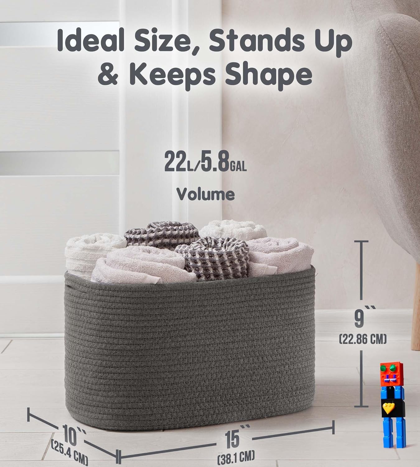 CHAT BLANC Cotton Rope Baskets for Organizing | Storage Baskets for Shelves | Rope Basket for Storage, Small Laundry Woven Baskets for Dog Toy Bin, Baby items, Graphite 3 Pack