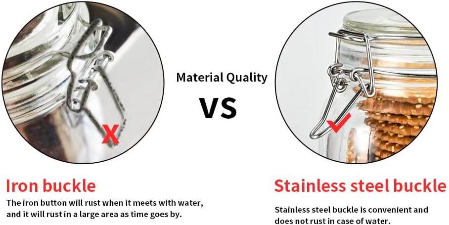 - Wide opening----Mason glass can open width can store food, easier to take and take food, easy to clean, Please clean these airtight glass jars by hand only with mild soap and warm water.