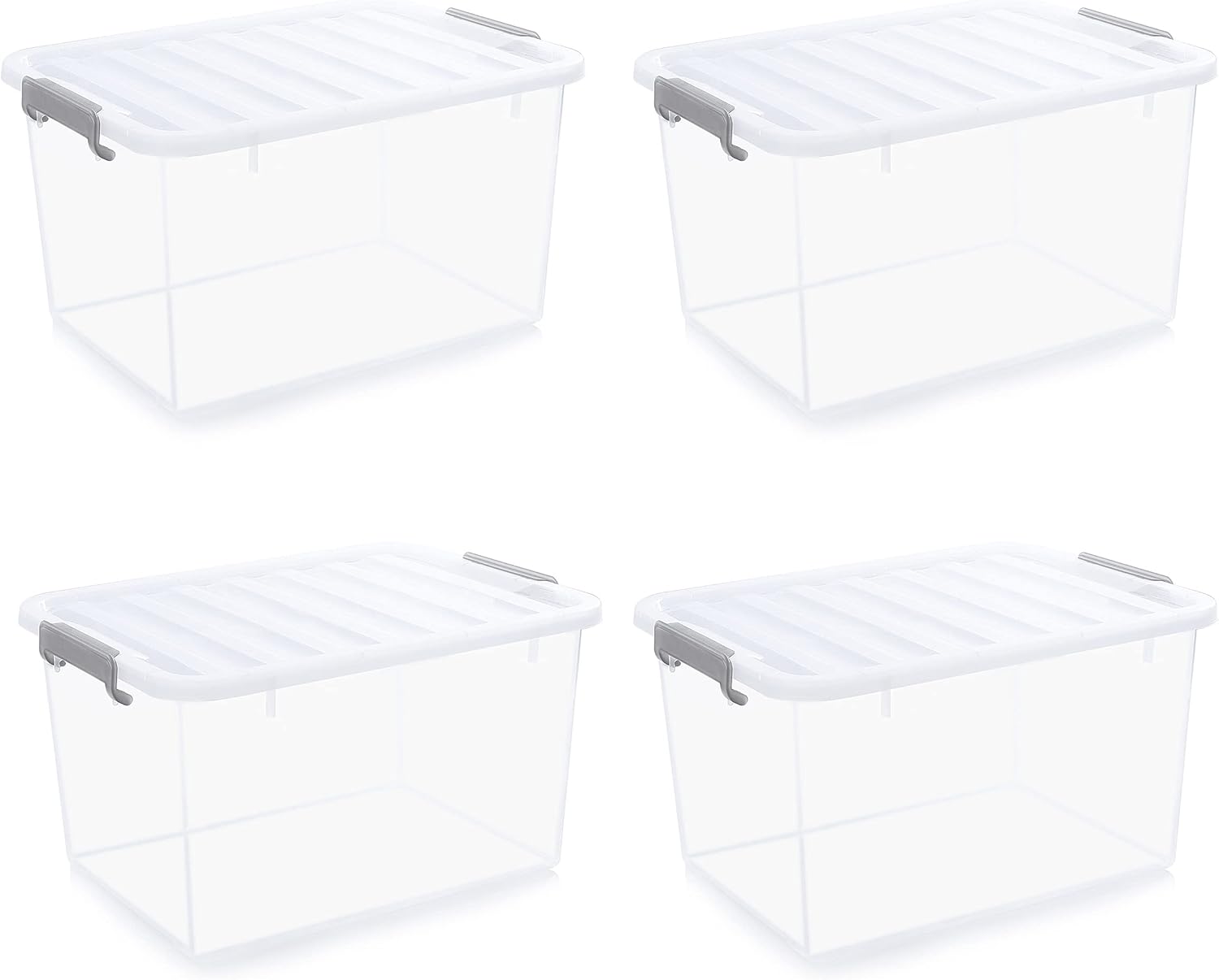 Citylife 44.4 QT Plastic Storage Bins with Latching Lids Stackable Storage Containers for Organizing Large Clear Storage Box for Garage, Closet, Kitchen, 4 Packs