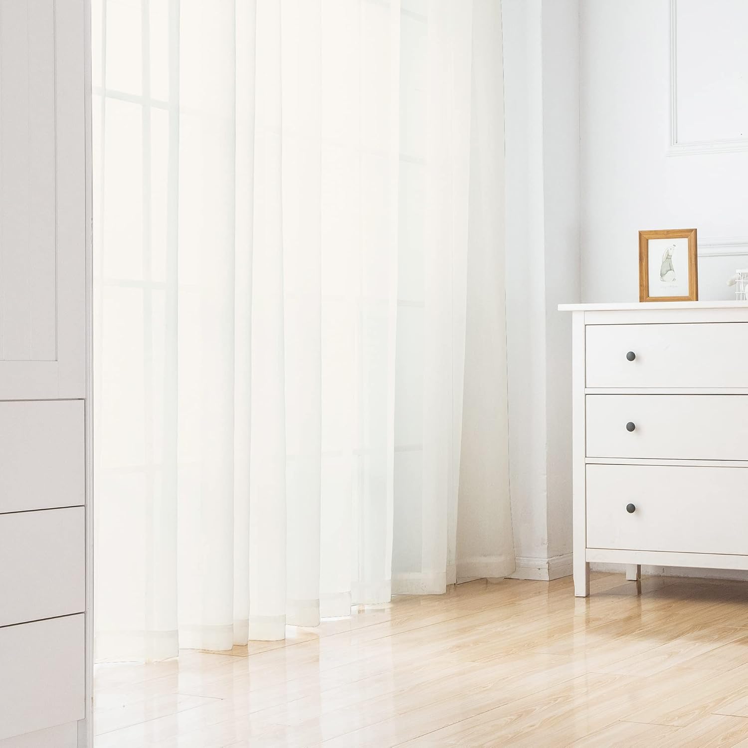 - Functional Curtains: The 96 inch sheer curtains can softly filter out glare sunlight and offer just the right amount of privacy. Protecting furniture and floor exposed to the sun, perfect for living room, bedroom, study, kitchen cabinet, bathroom, laundry room, basement windows.