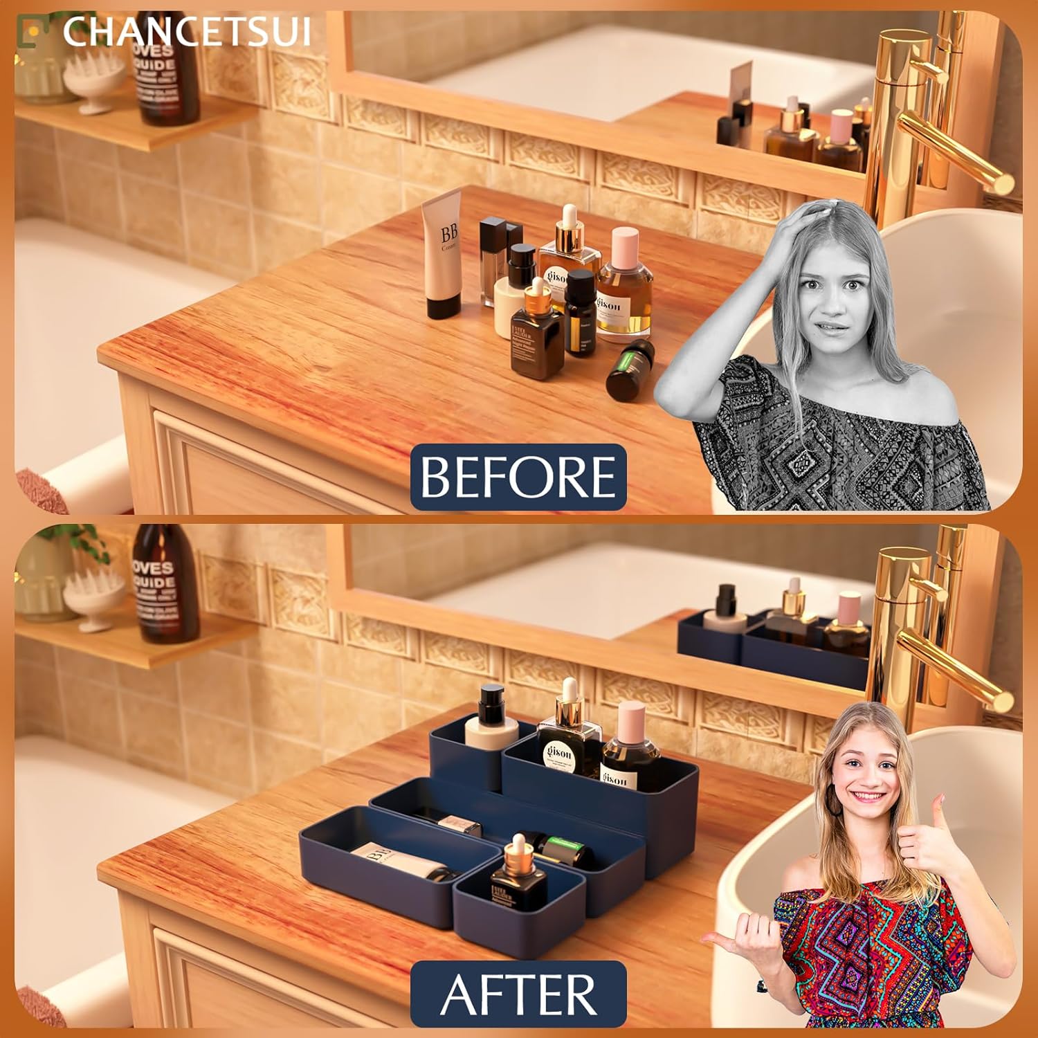 - [ LONG LASTING ] Made with quality plastic, a light weighted and easy to clean material that ensure the trays are built to last. The material makes the trays hard to break, keeping the organiser nice and steadily stacked.Customize your layout with individual bins in a bathroom, dresser, vanity, or desk.
