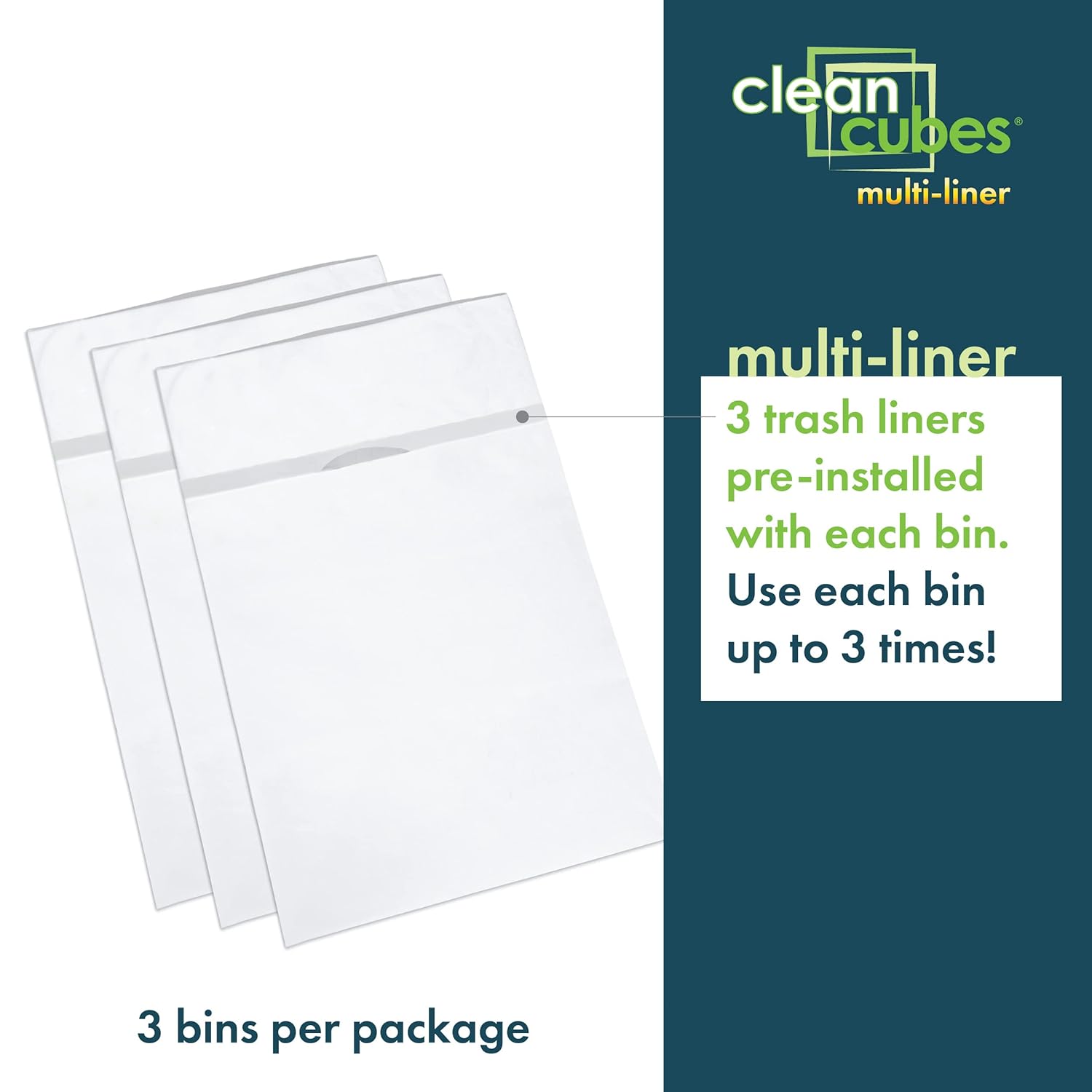 - ✅【VALUE 3-PACK】Includes 3 Clean Cubes per package — each bin comes with 3 custom-fitted trash liners. 30-gallon capacity (17” x 14” x 30”).