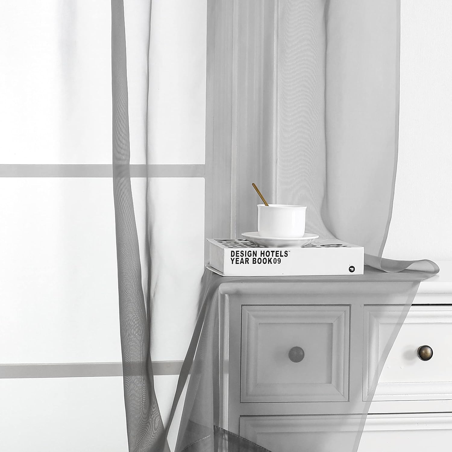 - Charcoal Grey Sheer Curtains: These light and airy voile sheer curtains are not only practical, but also beautifully decorative. These smooth and tactile curtains are beautifully sculpted and move in the wind to make your room look fresh and attractive. If you want more privacy, suggest to order 2 or more curtains to make sure there are more folds.