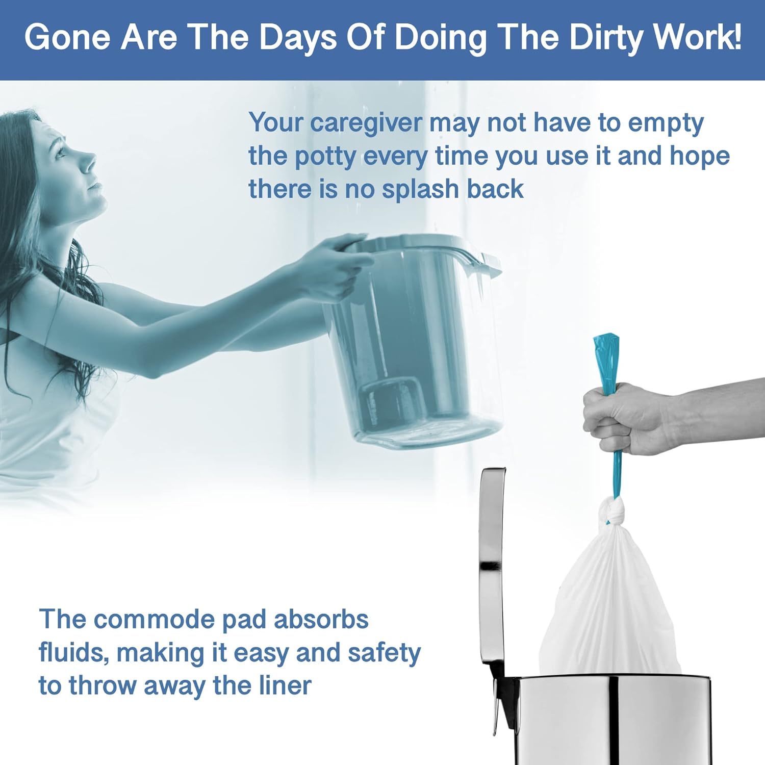 Commode Absorbent Pads for Bedside Commode Liners - 100 Pads for Portable Toilet Bags- No More Days Doing The Dirty Work - For Bedside Toilet Liners, Potty Bags for Portable Toilet, Potty Chair Liners