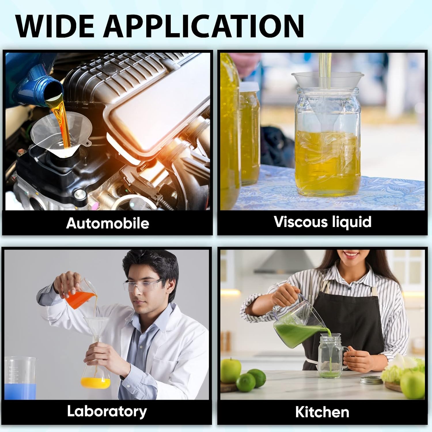 - Make Your Life Easier: Our funnel set is the perfect solution not only for transferring oil, spices, or car fuel but also for craft projects. Use the mini funnels for filling small bottles to sprinkle decorations on your art projects or for laboratory tasks at school.