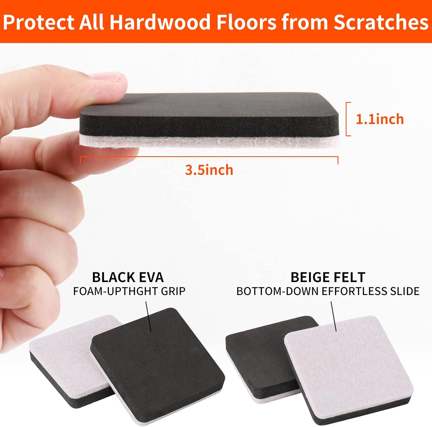 - ❤【Durable Material & Reusable】- Reusable 3.5 inch felt furniture sliders made of High quality EVA foam and felt pads (non-stick). No need glue to stick and won’t stain your furniture legs and the EVA foam securely grips the furniture for a long-lasting or be removed and reused.