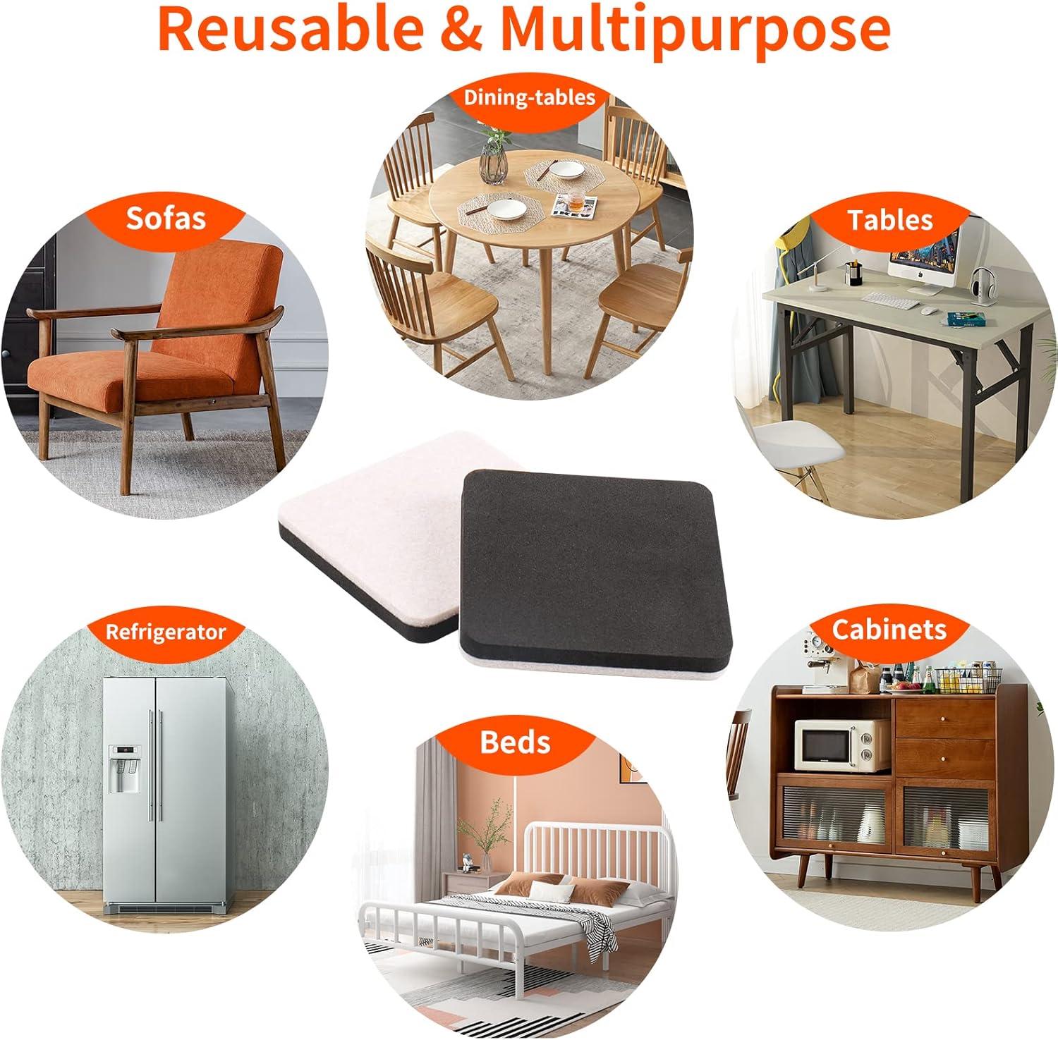 - ❤【Widely Use of Various Furniture】- Heavy duty square felt furniture movers sliders Ideal for any heavy duty Couch /Refrigerator/Tables Cabinet /Sofas /Beds /Dressers /Recliners /Desk , or much more heavy appliances.