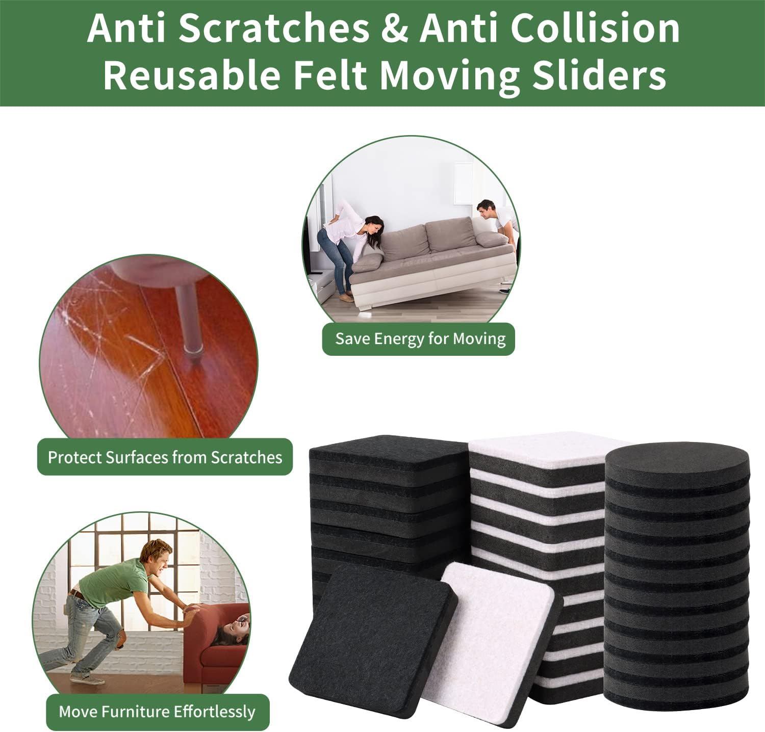 - ❤【Durable Material & Reusable】 - 2.5 inch felt furniture pads made of high-quality EVA foam and non-stick felt, these pads grip furniture securely without glue or stains. Furniture moving pads can be left in place or be removed and reused.