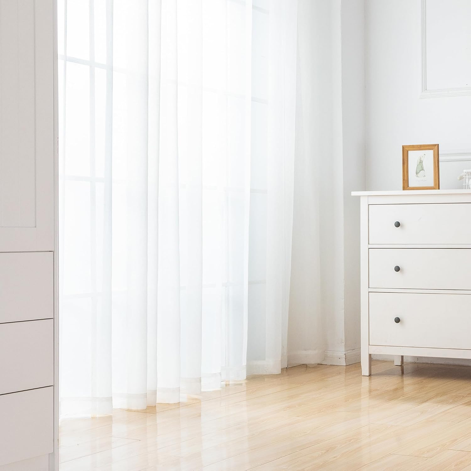 - Functional: The sheer white curtains keep out the strong sun rays, so you can enjoy the sun without too much glare, which is a good light adjustment of the room. They also versatile to go with any decor especially like bedroom, living room, guest, dinning, nursery room. Meantime the light filtering panel is also suitable for casual, modern luxury, and country pure style.