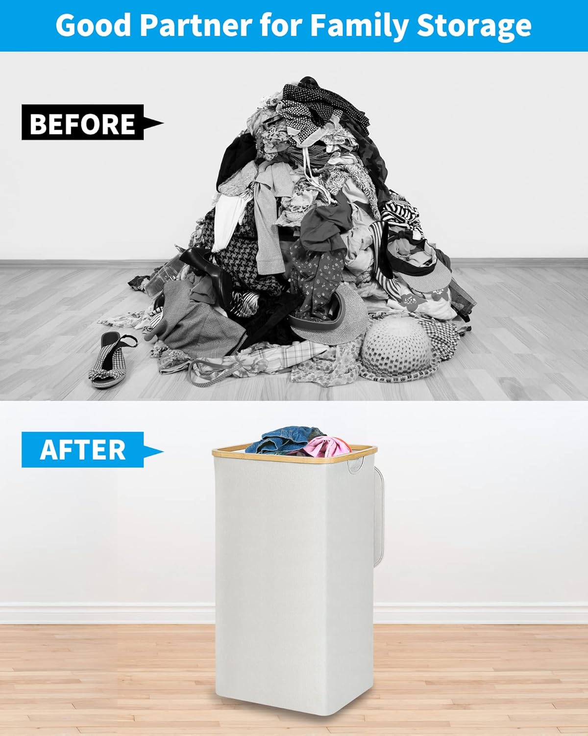 - 【Bamboo Handles and Removable Liner】The Laundry bin comes with sturdy bamboo handles for easy carrying and a removable inner bag for convenient laundry sorting and machine washing. The bamboo handles offer a natural, eco-friendly touch, while the liner simplifies the laundry process, keeping your space organized and clean.