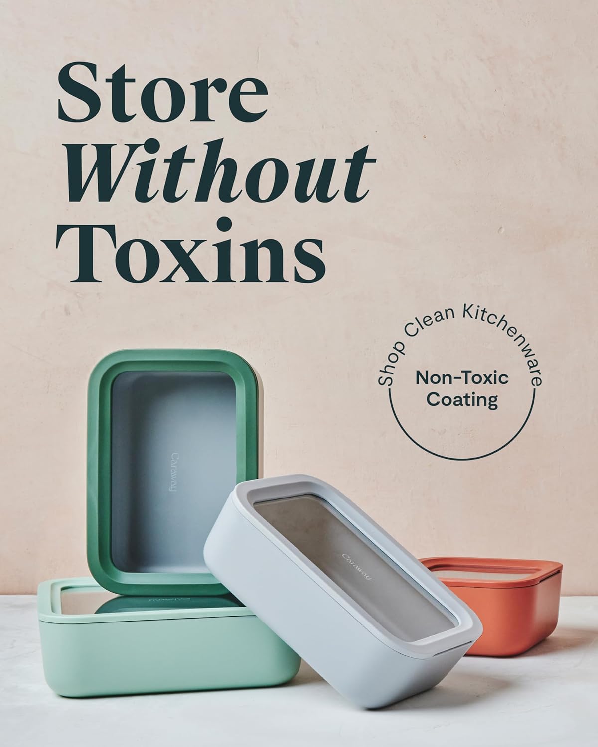- BEAUTIFULLY DESIGNED: The cleanest, best-looking approach to storing your food. Our glass container set features clear glass lids for easy viewing that puts your leftovers in the spotlight. Each set comes in classic colors that will match with your entire Caraway collection.