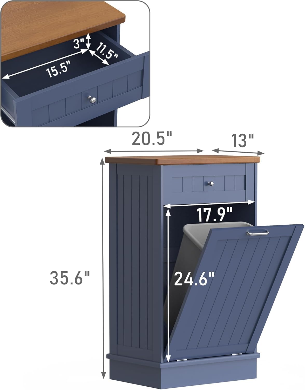 - 🏡【Durable and Stable】 35.6 "H x 20.5 "L x 13 "W cabinet support is stable enough to hold up to a 35 lb (ca. 16 kg). Our Trash can, a perfect match for a 10-gallon trash can. Rubberwood top surface provides extra cutting space, and can easily withstand even a microwave and coffee maker