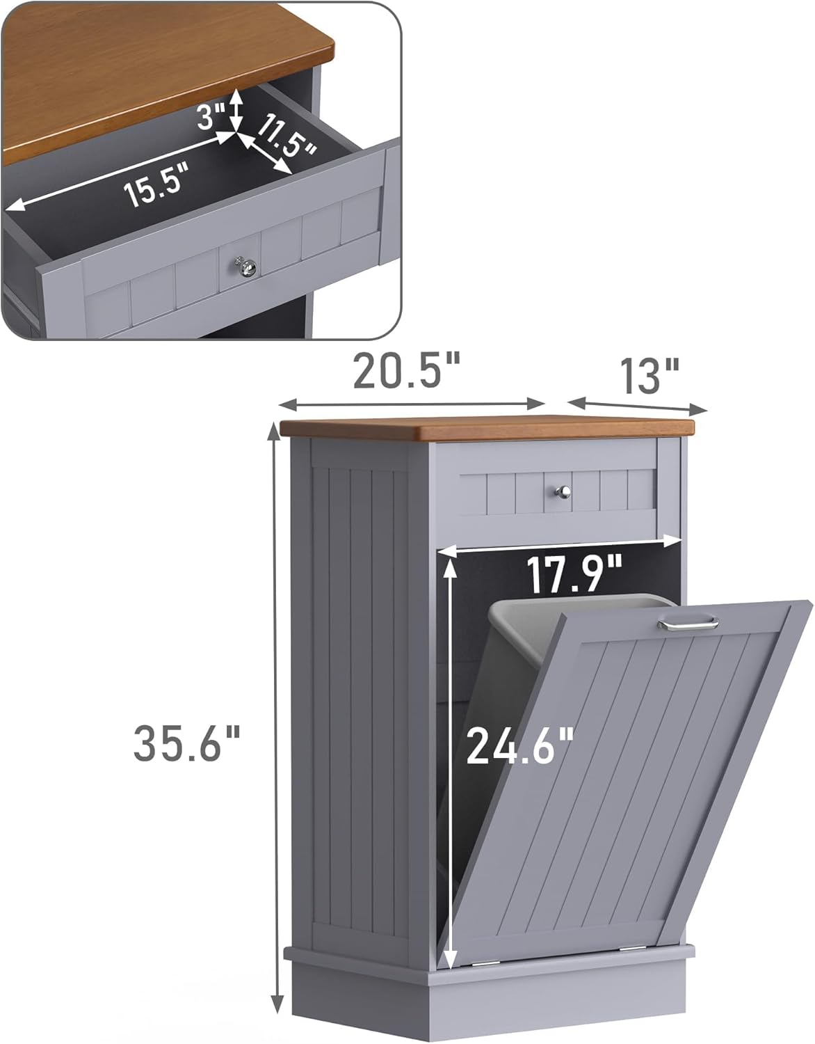 - 🏡【Durable and Stable】 35.6 "H x 20.5 "L x 13 "W cabinet support is stable enough to hold up to a 35 lb (ca. 16 kg). Our Trash can, a perfect match for a 10-gallon trash can. Rubberwood top surface provides extra cutting space, and can easily withstand even a microwave and coffee maker
