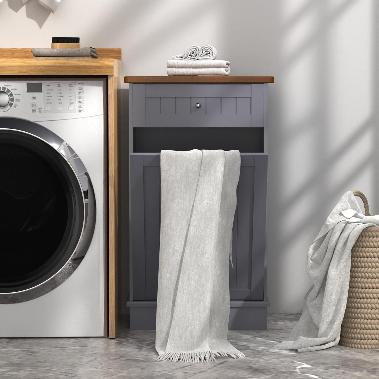 Betterhood Tilt Out Trash Cabinet 10 Gallon Wooden Free Standing Laundry Sorter Cabine,Recycling Cabine with Hideaway Drawer,Tilt Out Trash Cabinet Can Bin Kitchen