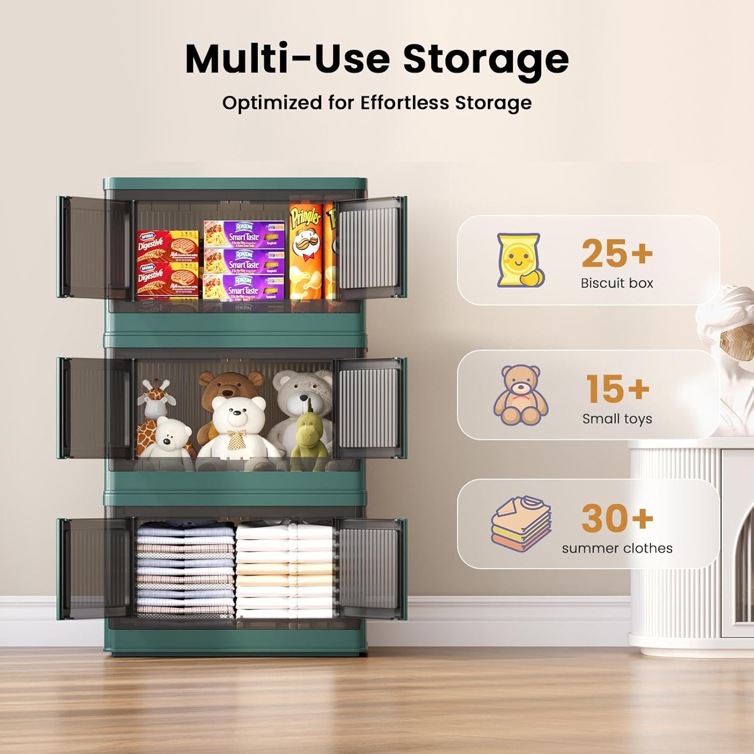 - Special Feature : See-through, Easy to assemble, Stackable, Collapsible, Moveable