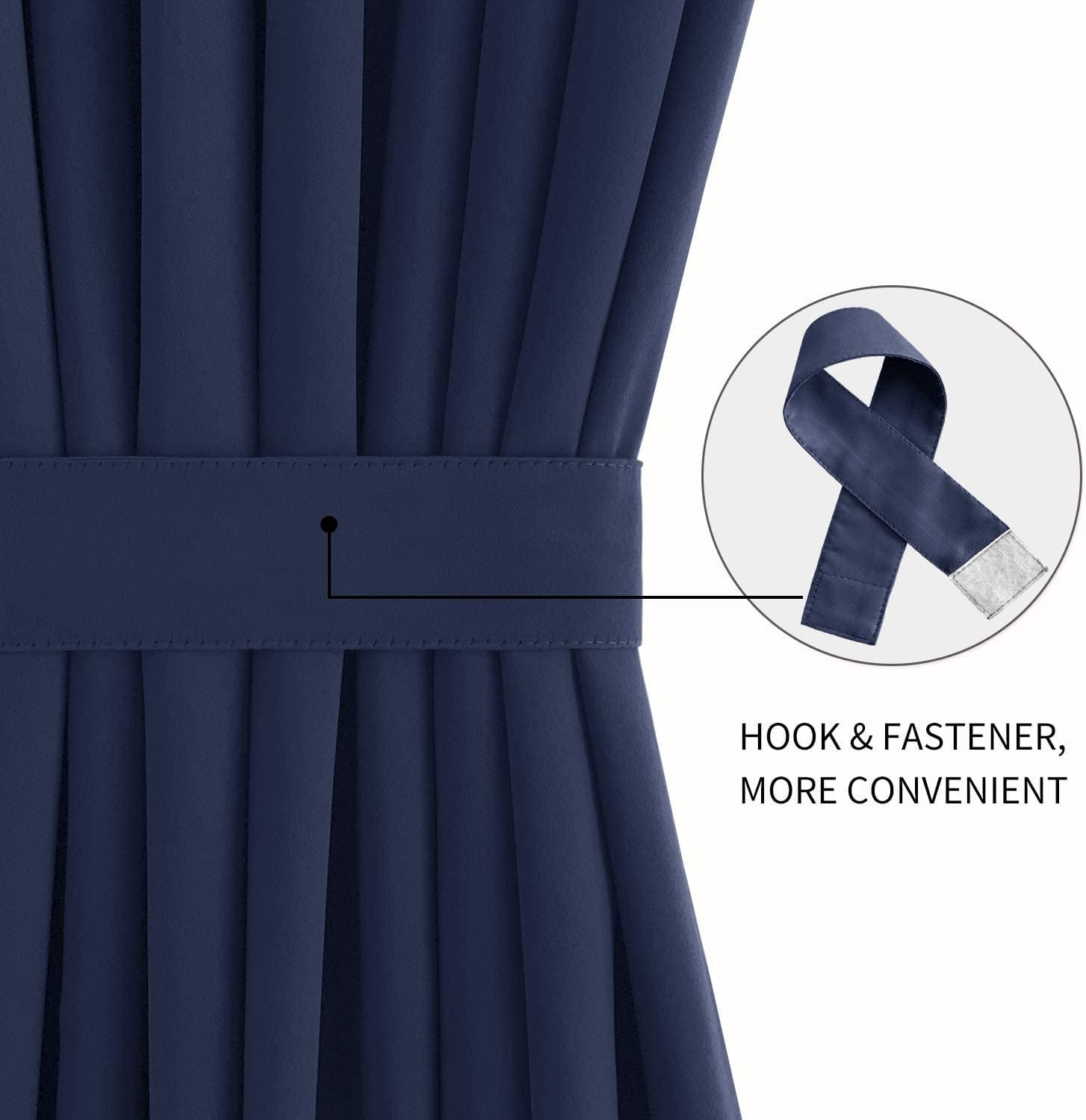 DWCN French Door Curtains – Rod Pocket Thermal Blackout Curtain for Doors with Glass Window, Kitchen and Patio Doors for Privacy, 36 X 72 Inches Long, 1 Curtain Panel with Tieback,Navy Blue