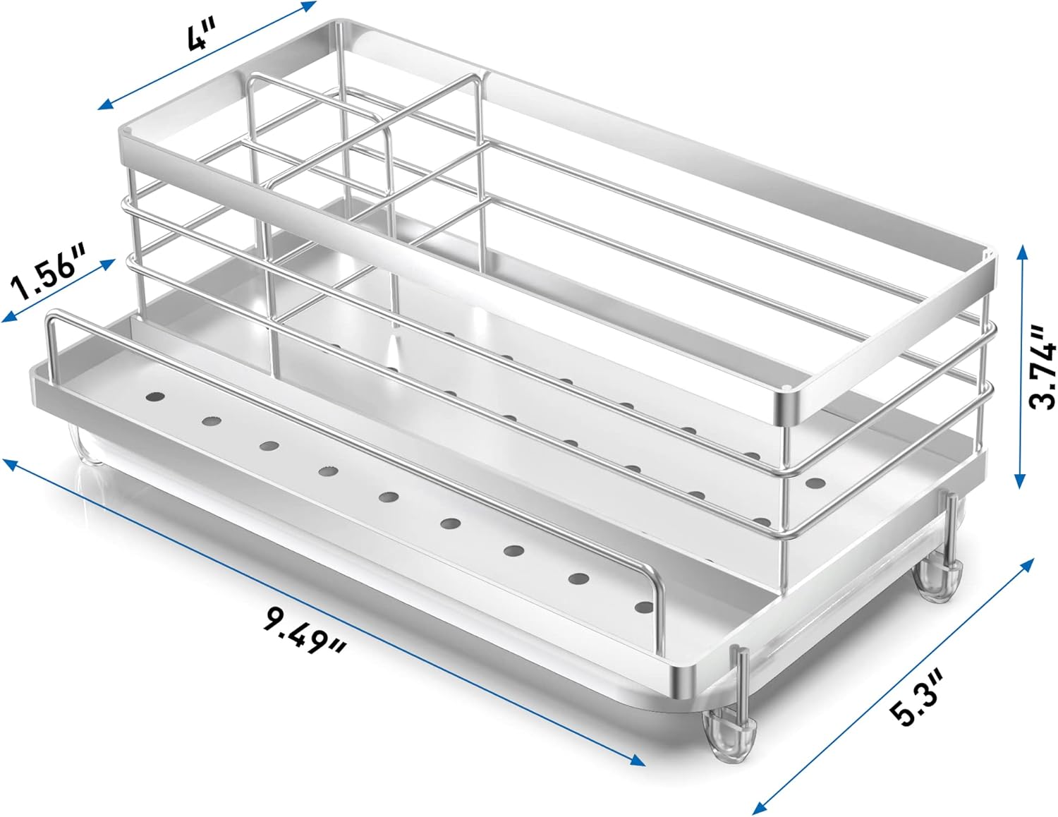 - 【ANTI-RUST STURDY MATERIAL】: We chose a stainless steel material more suitable for kitchen sinks to make the sink caddy and added sandblasting technology to the surface for secondary protection. This improves the corrosion and scratch resistance of the sponge holder, which will still look new after long-term use.