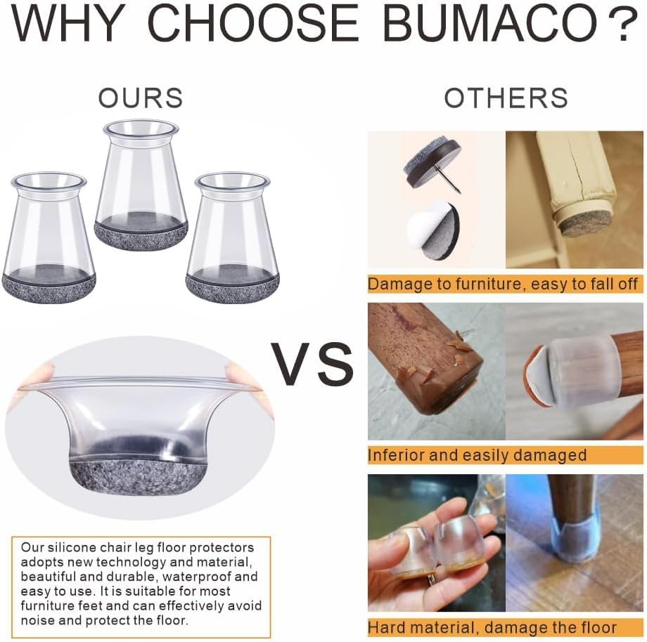 BUMACO Chair Leg Floor Protectors Chair Leg Protectors for Hardwood Floors Silicone Pads Covers to Protect Floors Clear-20 Pcs Universal XS (8/16"-15/16")