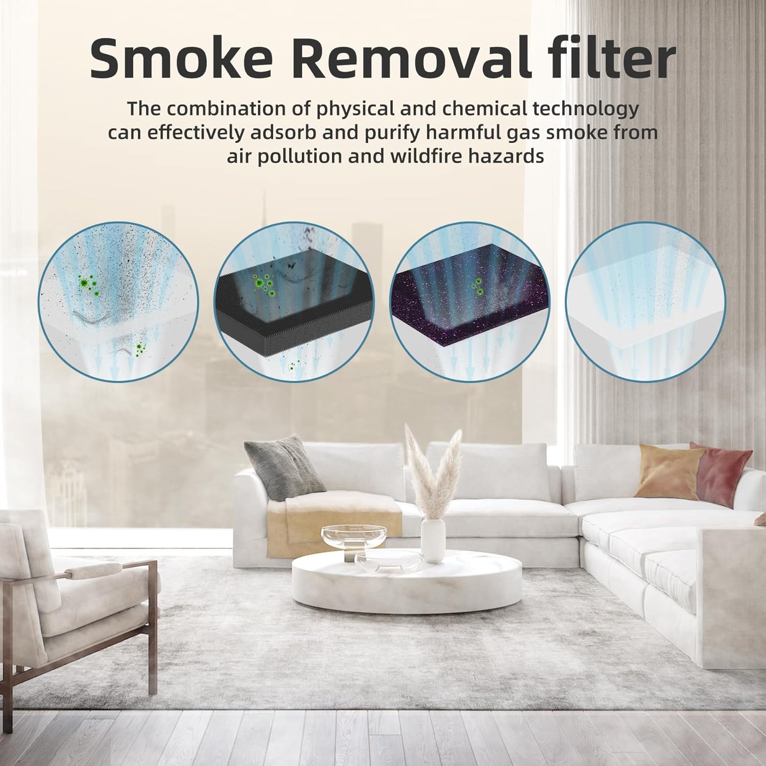 - 4-Stage Filtration: Breathe Freely in a Healthy Environment - Our advanced filter system captures a wide range of contaminants. From large particles like dust, lint, fibers, hair, and pet fur to ultra-fine particles. The filter layer ensures capture rate, keeping your air pure and fresh. Each filter lasts approximately 3-6 months, providing long-lasting performance.