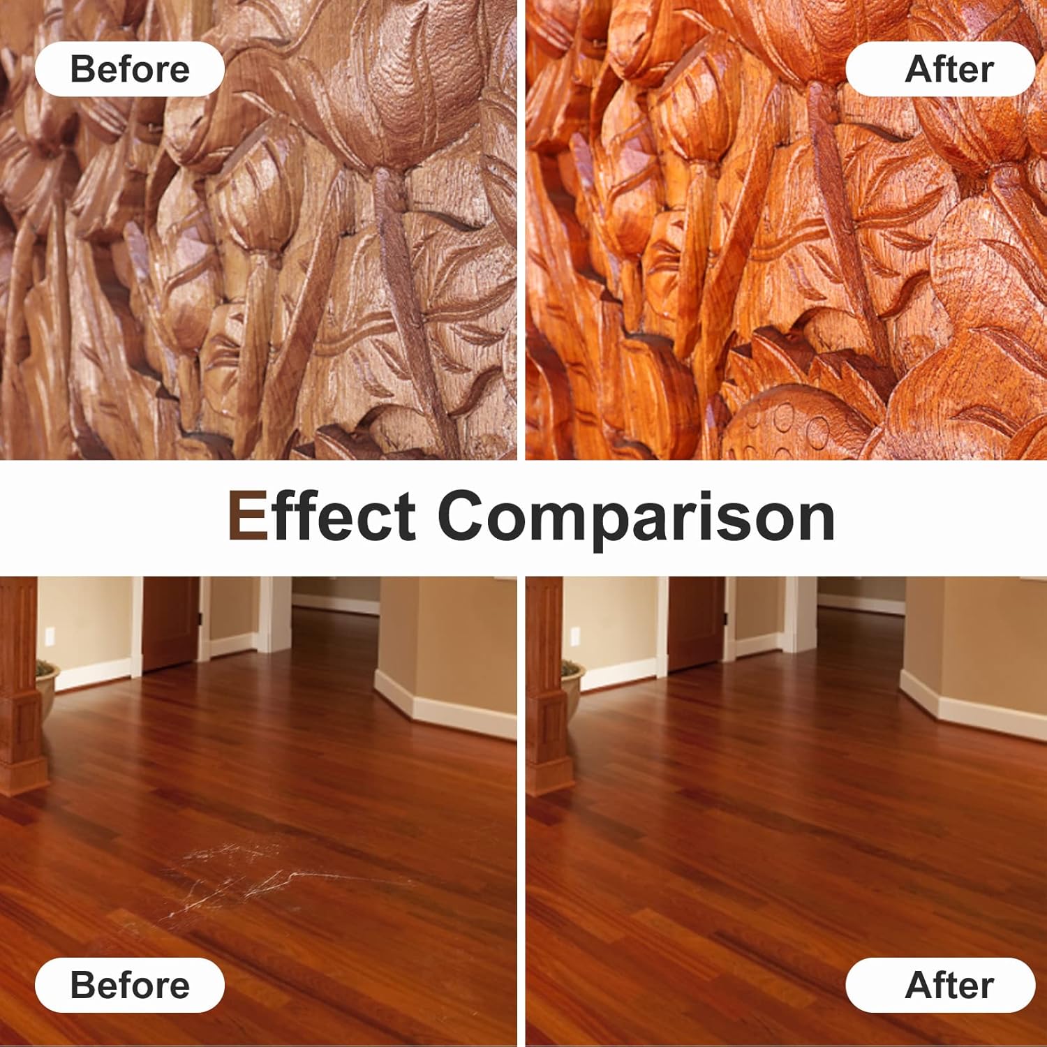 - Wide Range of Uses: This wood touch up kit not only covers blemishes, scuffs, and nicks on scratched wood, desks, wood veneers, floors, trim, cabinets, tables, bedposts, doors, laminate, and framing but also polishes wood furniture, gives your furniture a new look. Super easy to use, dries in seconds, no more visible scratches, or dents, and should be in everyone's home DIY toolbox