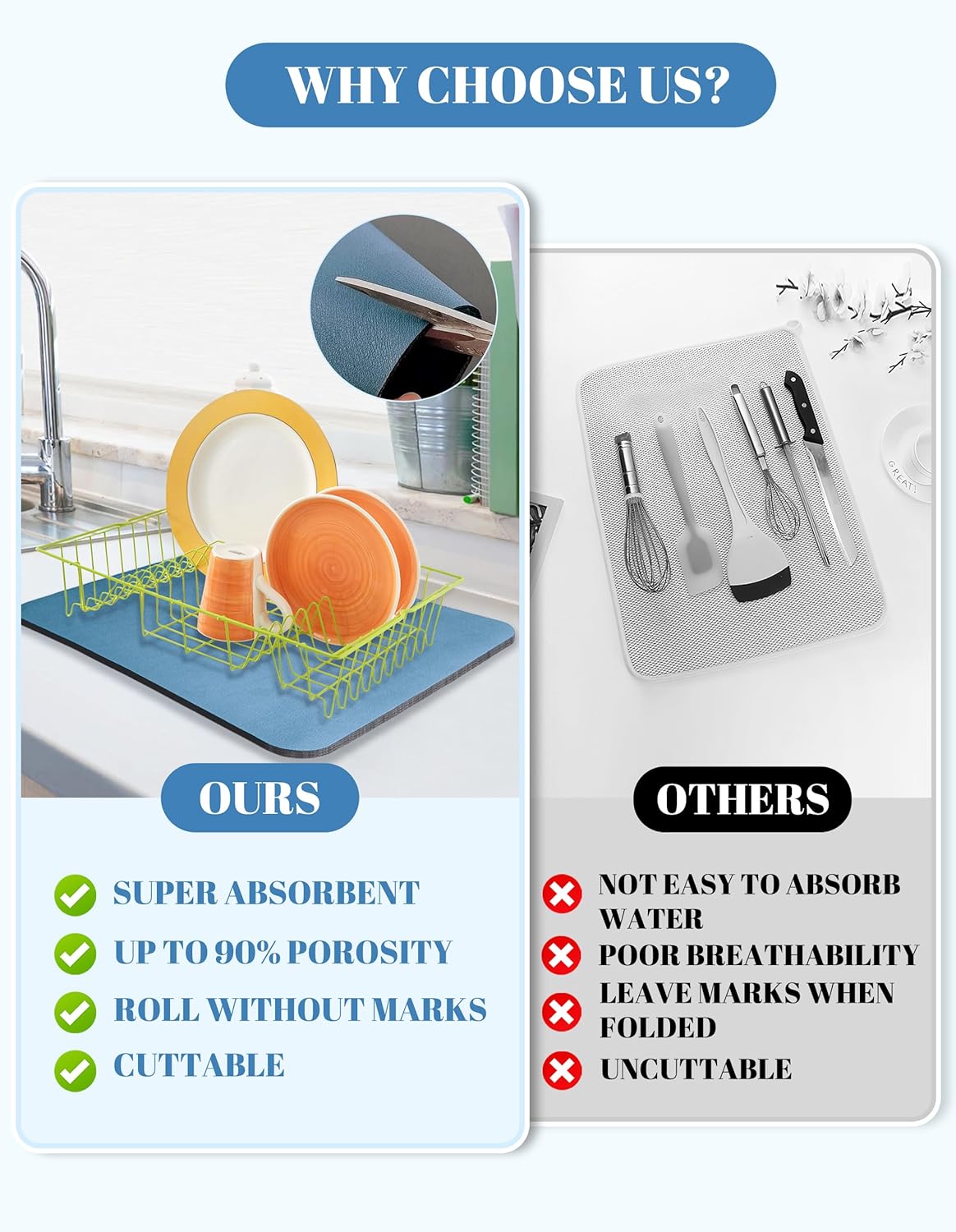 - DISH DRYING MAT: The drying mat is soft and absorbent, Always keep countertops clean and tidy. A practical kitchen mat accessory is definitely worth choosing.