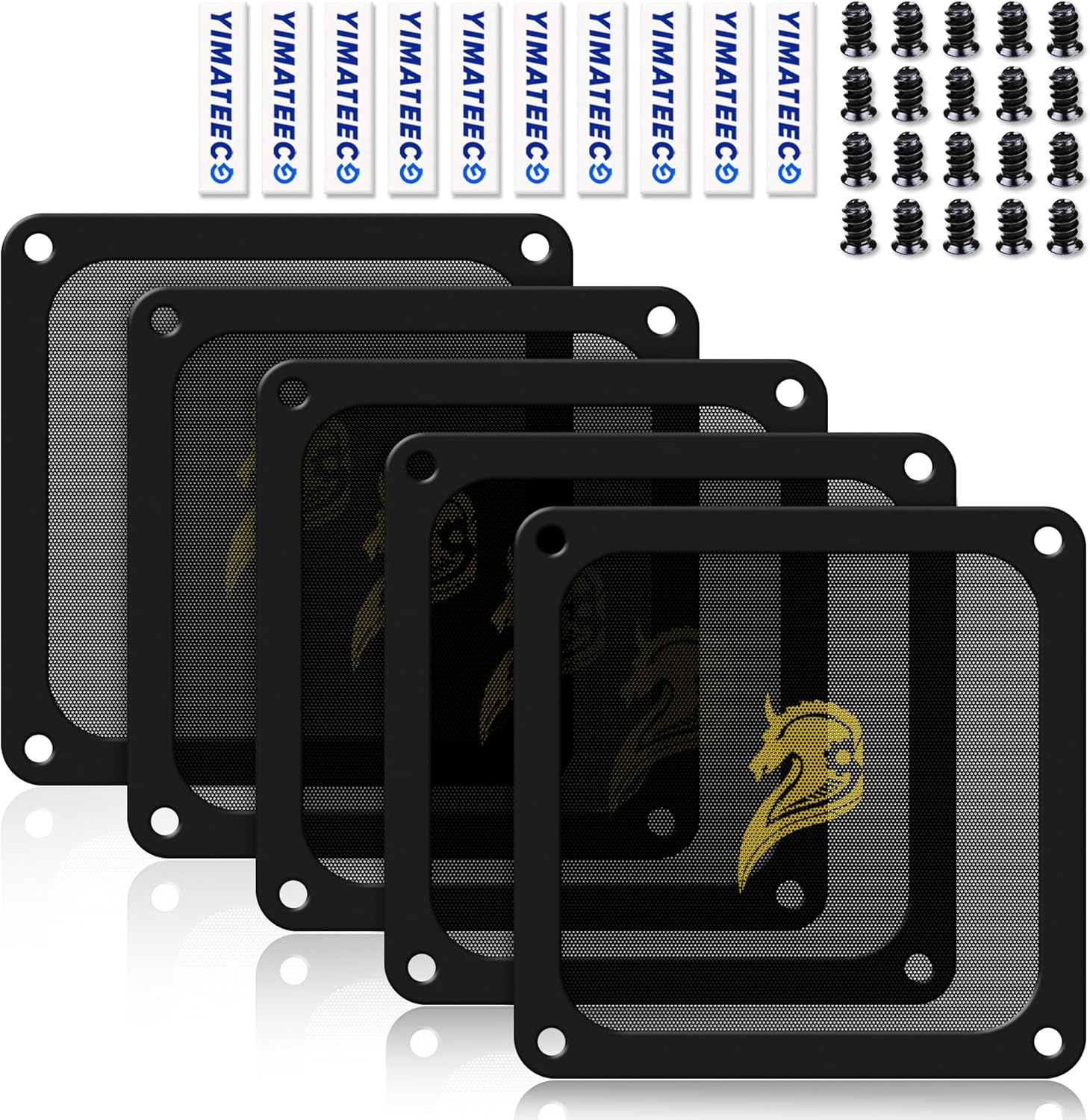 - 【DELIVERY LIST】YIMATEECO Provides: 5 x 140*140mm PC Dust Filter Gentleman Aesthetic (PVC) + 10 x 40*10mm Nano Gel-Mat(Acrylic) + 20 x 5*10mm M5 Fans Screws(Q235 STEEL).