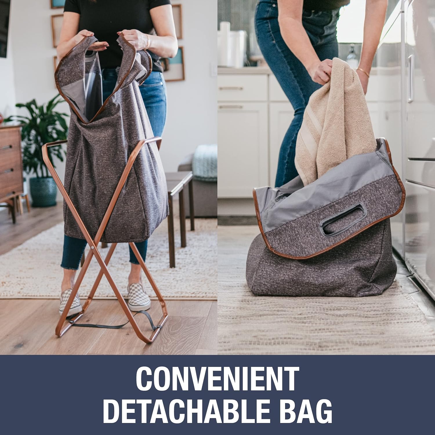 - REMOVABLE BAG - The fabric portion of the hamper suspends off the ground to keep it clean and is easily removable to carry to the laundry room; the frame is collapsible for easy organization when not in use