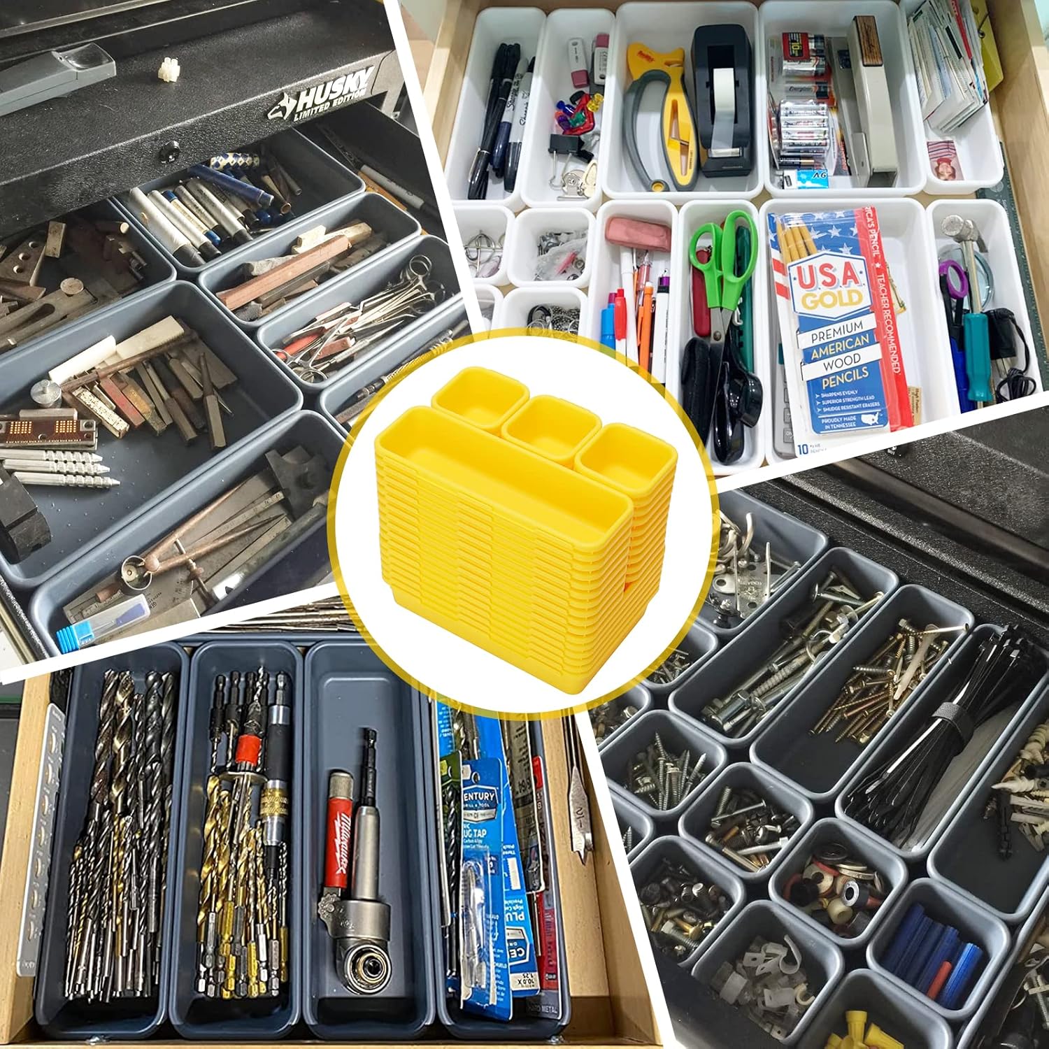 42 Pack Tool Box Organizer Tool Tray Dividers, Rolling Tool Chest Cart Cabinet Workbench Desk Drawer Organization and Storage for Hardware, Parts, Screws, Nuts, Small Tools Organization(Yellow)