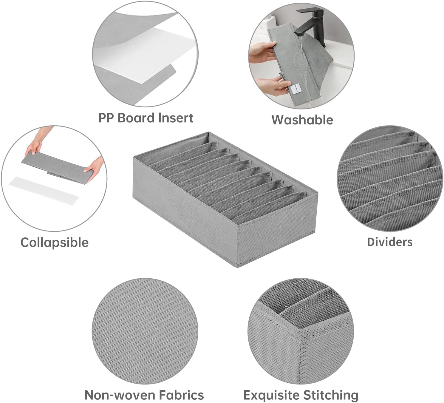 - 👕【10 Grids Divider】Each wardrobe organizer is divided into 10 separate grids, one grid, and one item, which can keep your clothes and closet neat and tidy and easy to pick and place in a short time. Plus, the foldable and stackable design can greatly improve the utilization of wardrobe space.