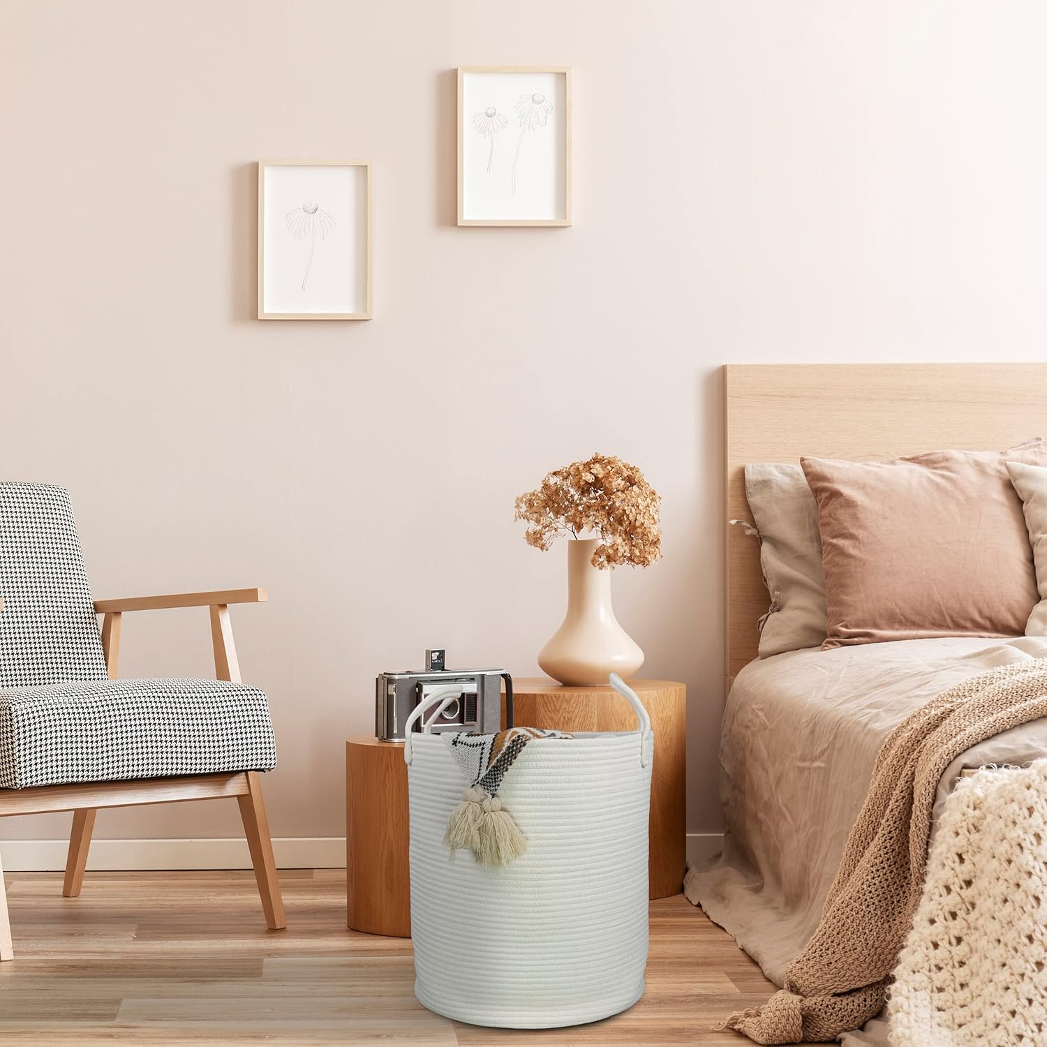 - Designed to complement your room and decor: We have carefully selected classic solid colors for these rope basket bins or hampers for laundry. With these colors, the laundry hamper will look good in any room of your home. This tall round rope blanket storage basket enhances any room or decor. It is perfect for bedrooms, bathrooms, and dorm rooms. These aesthetic rope baskets or hampers for bedroom are essential items for your daily storage needs, helping keep your room clean and organized.