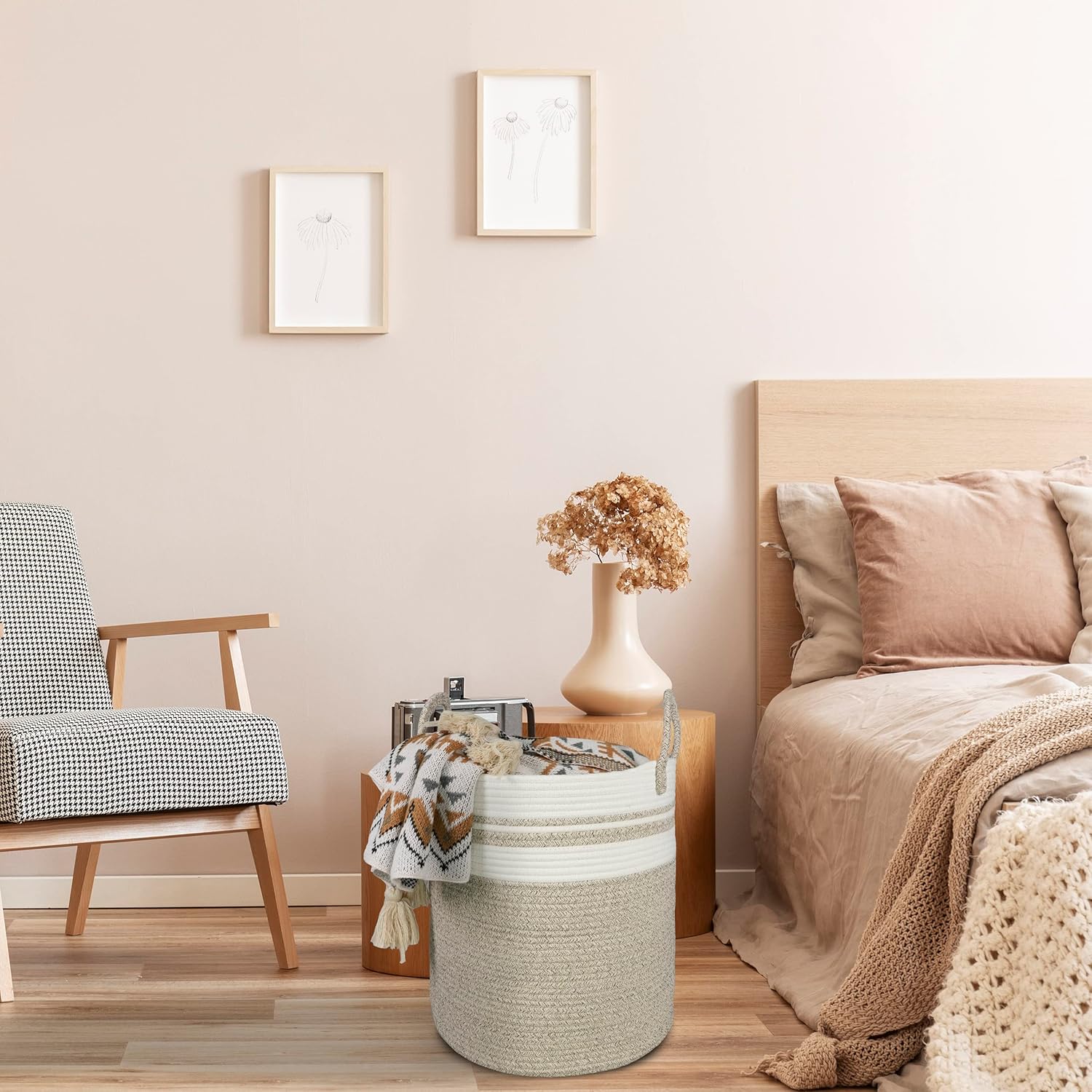 - Designed to complement your room and decor: We have carefully selected classic solid colors for these rope basket bins or hampers for laundry. With these colors, the laundry hamper will look good in any room of your home. This tall round rope blanket storage basket enhances any room or decor. It is perfect for bedrooms, bathrooms, and dorm rooms. These aesthetic rope baskets or hampers for bedroom are essential items for your daily storage needs, helping keep your room clean and organized.