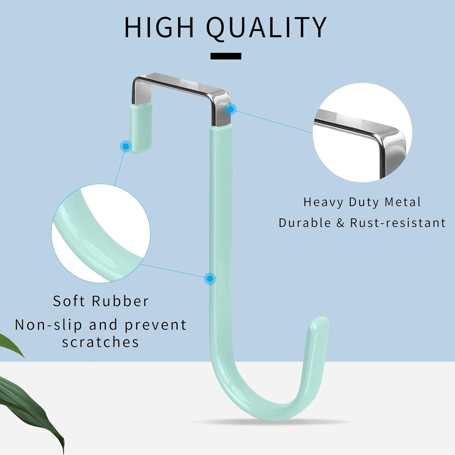 FYY Over The Door Hooks, 4 Pack Door Hangers Hooks with Rubber Prevent Scratches Heavy Duty Organizer Hooks for Living Room, Bathroom, Bedroom Hanging Clothes, Towels, Hats, Coats, Bags Green