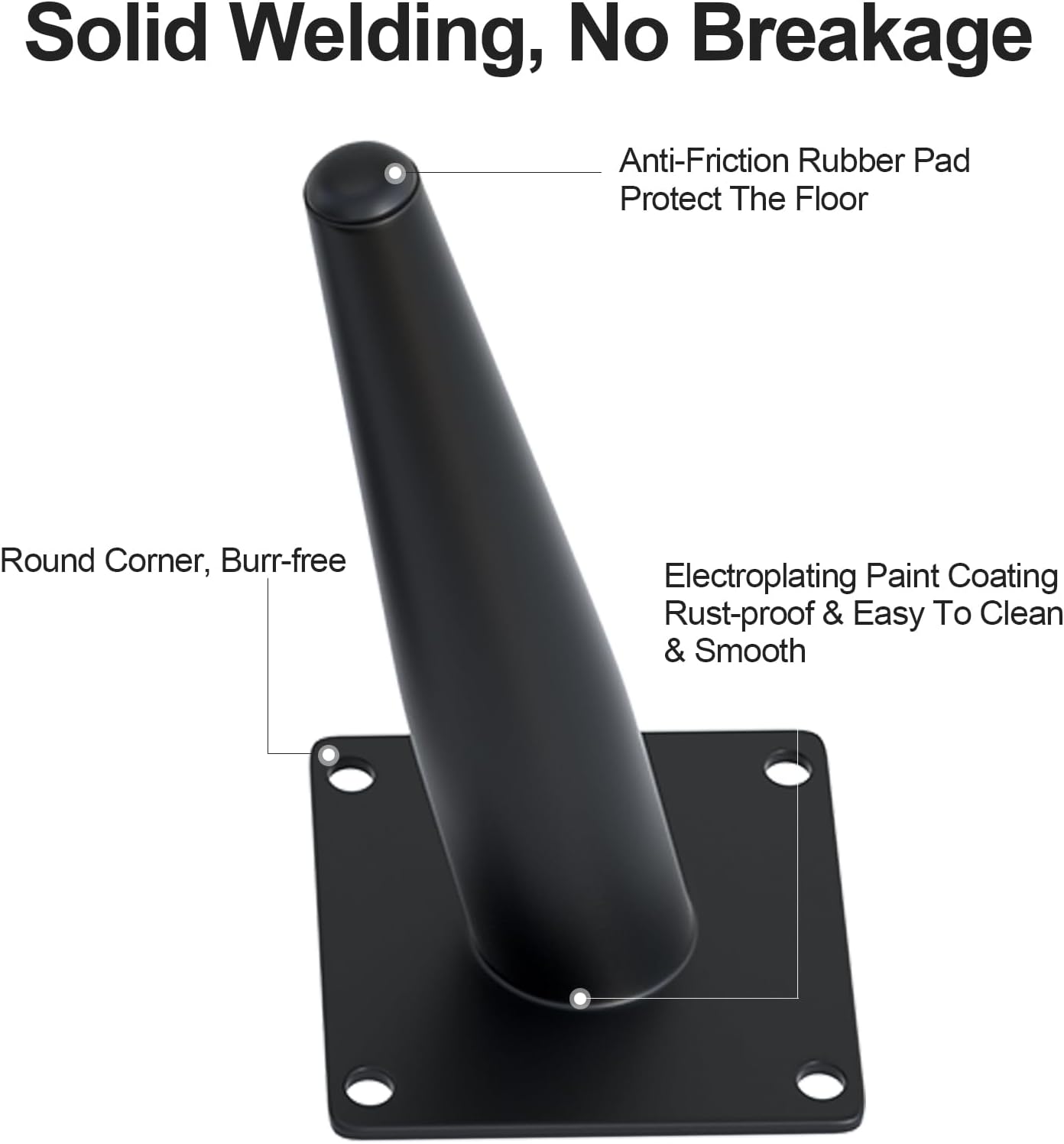 4PCS 5 Inch Matte Black Tapered Angled Legs for Furniture, Metal Mid Century Mordern Feet, Heavy Duty Slanted Stand Legs Kit for Couch, Coffee Table, Desk, Dresser, Sofa, Chair