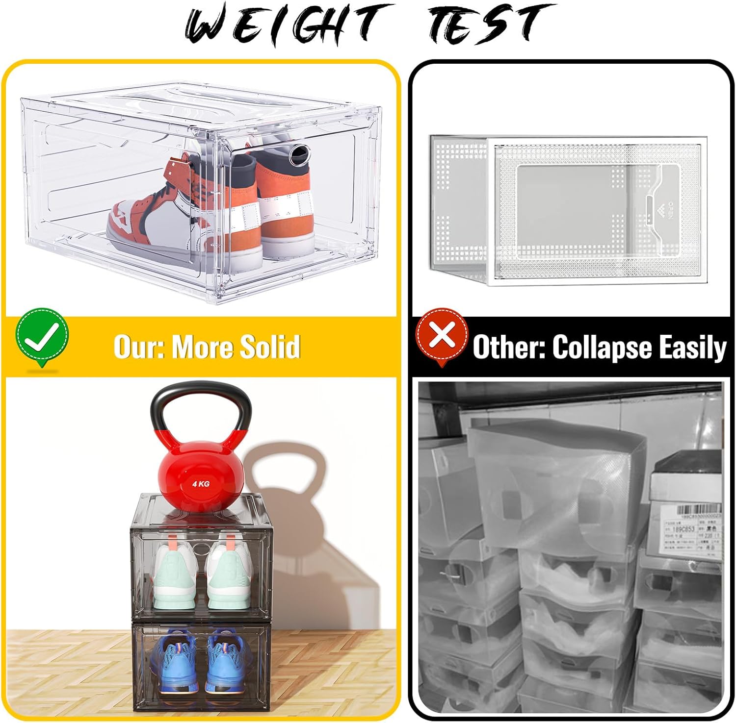 - 【Multipurpose Storage】These clear shoe boxes stackable is designed for making it easier to find anything in need. Good for organizing with shoes, clothes, socks, hat, underwear, bra, scarves and accessories. Finally, stack the boxes neatly to save a lot of space