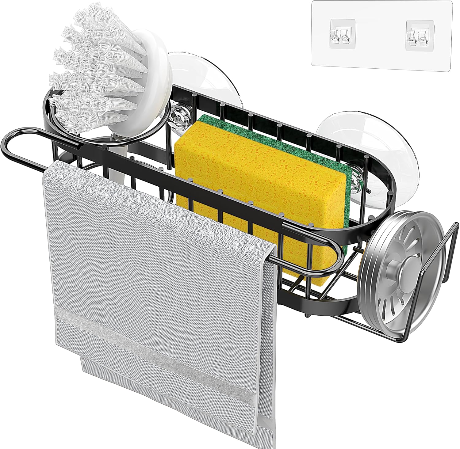 - 【SMALL SHELF LARGE CAPACITY】Unlike the common simple kitchen sponge holder for sink on the market, this kitchen sink rack can be used to store sponges, soap, brushes, towels, sink filters, sink plugs, scrubs and nail brushes, kitchen essentials for new home