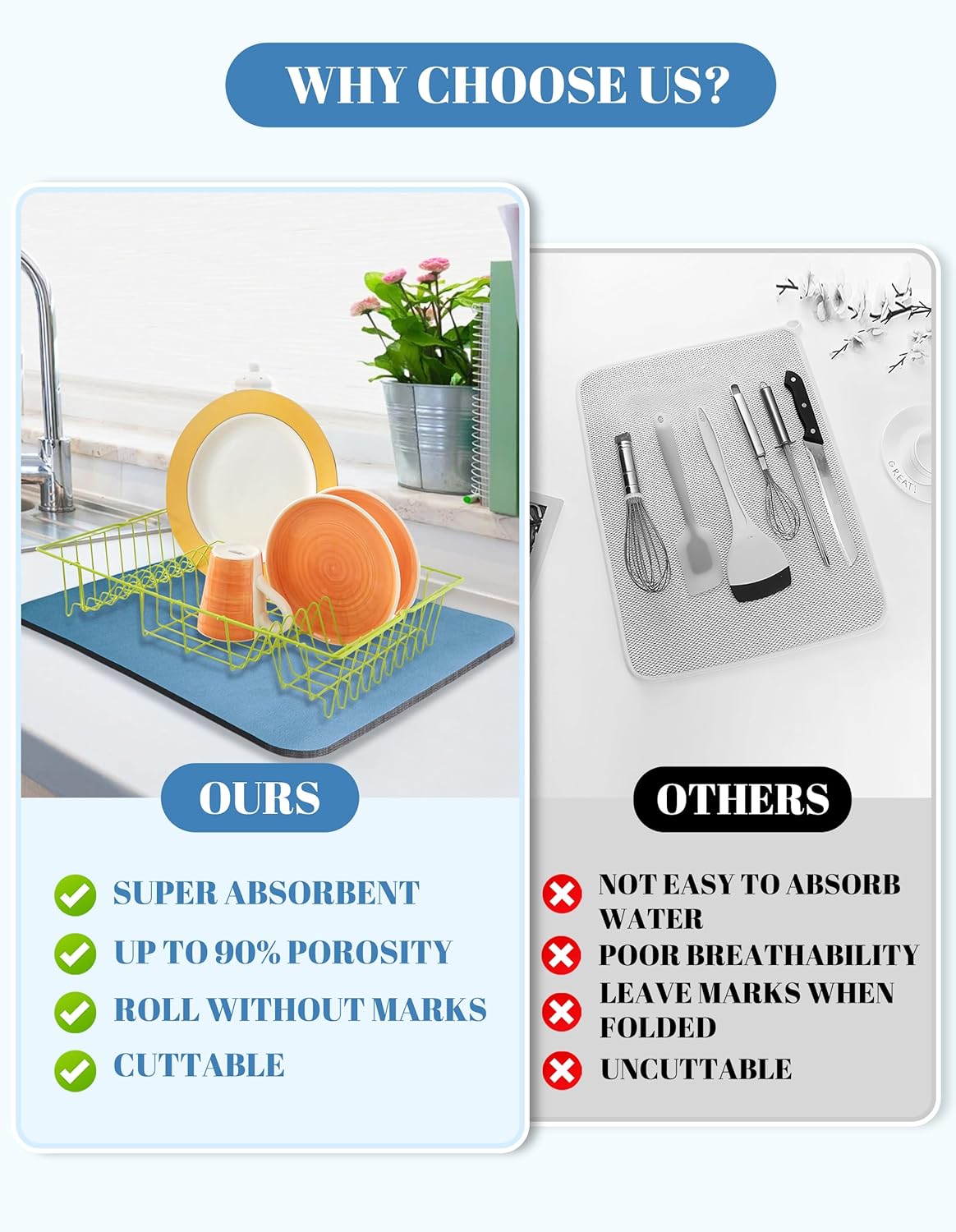 - DISH DRYING MAT: The drying mat is soft and absorbent, Always keep countertops clean and tidy. A practical kitchen mat accessory is definitely worth choosing.