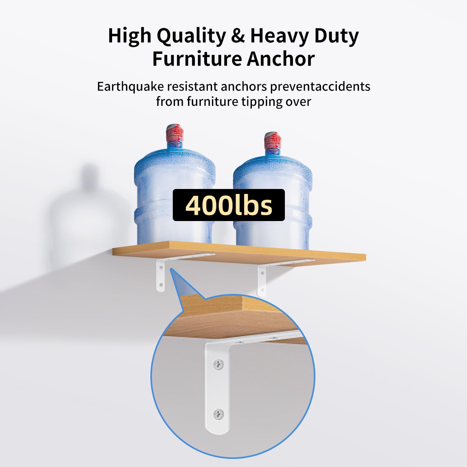 • 【Maximum Stability for Child Safety】:Includes 4 furniture anchors designed to resist up to 400 lbs force, effectively preventing furniture tip-overs and safeguarding curious toddlers around cabinets, dressers, and bookshelves.