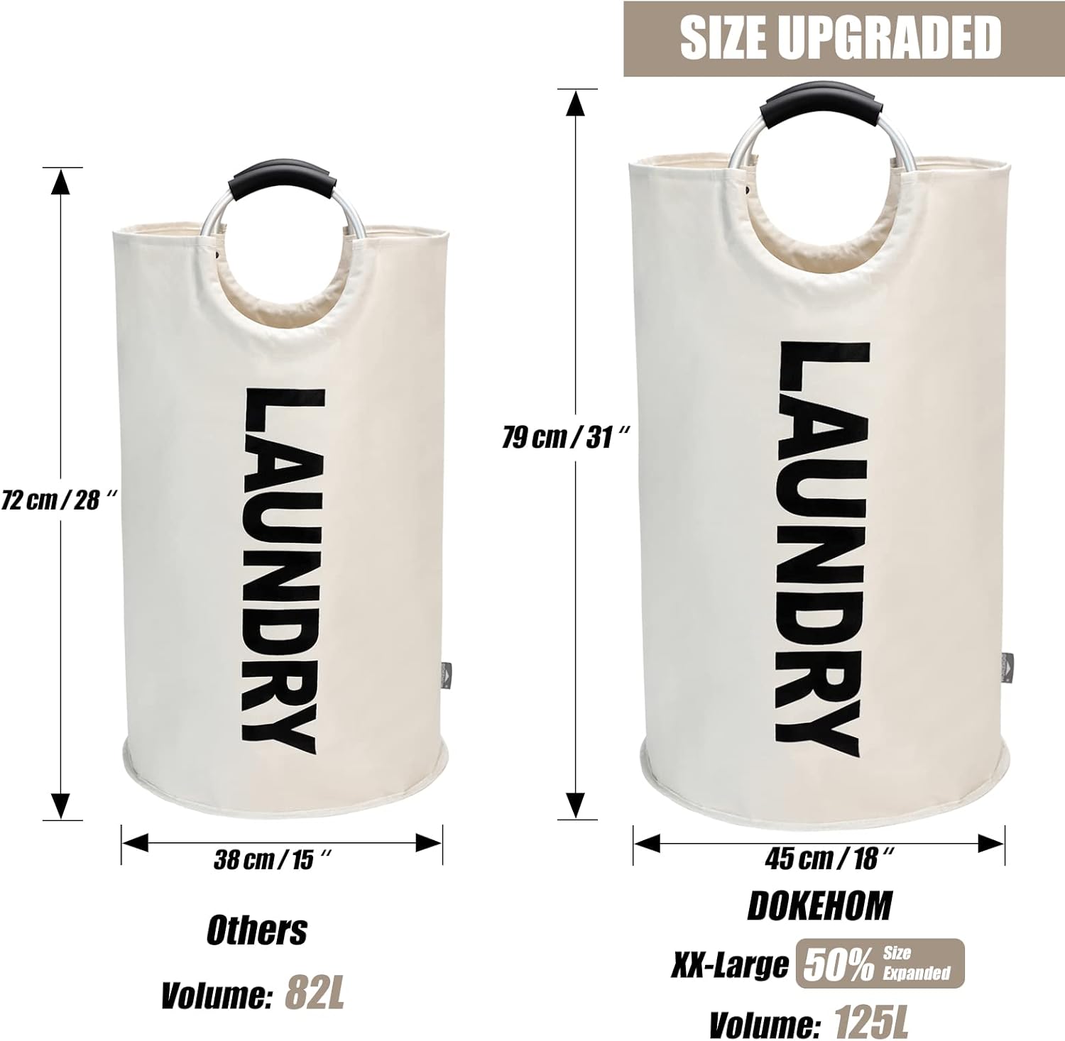 DOKEHOM 125L X-Large Laundry Basket, Collapsible Laundry Bag, Freestanding Tall Clothes Hamper, Foldable Washing Bin (Beige)