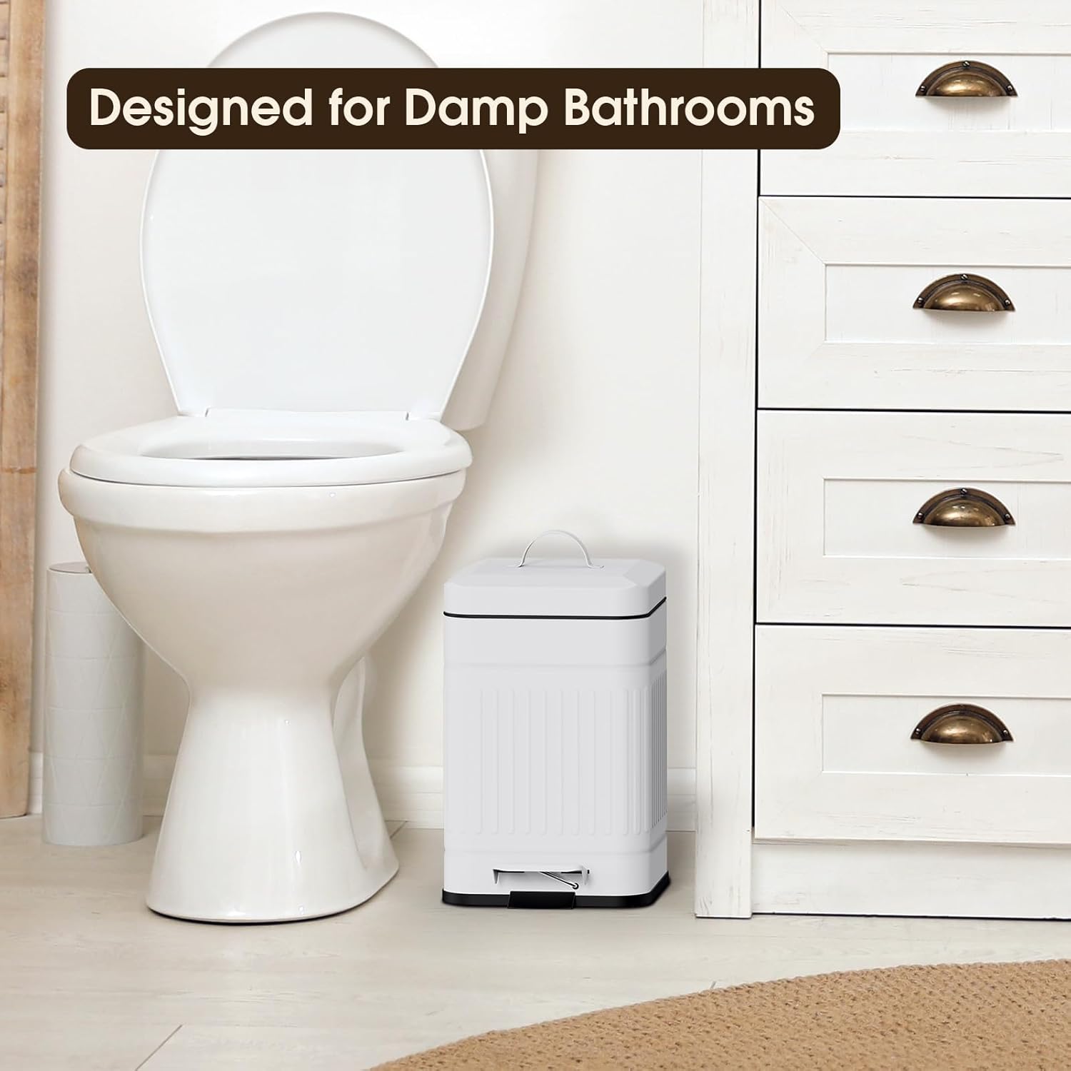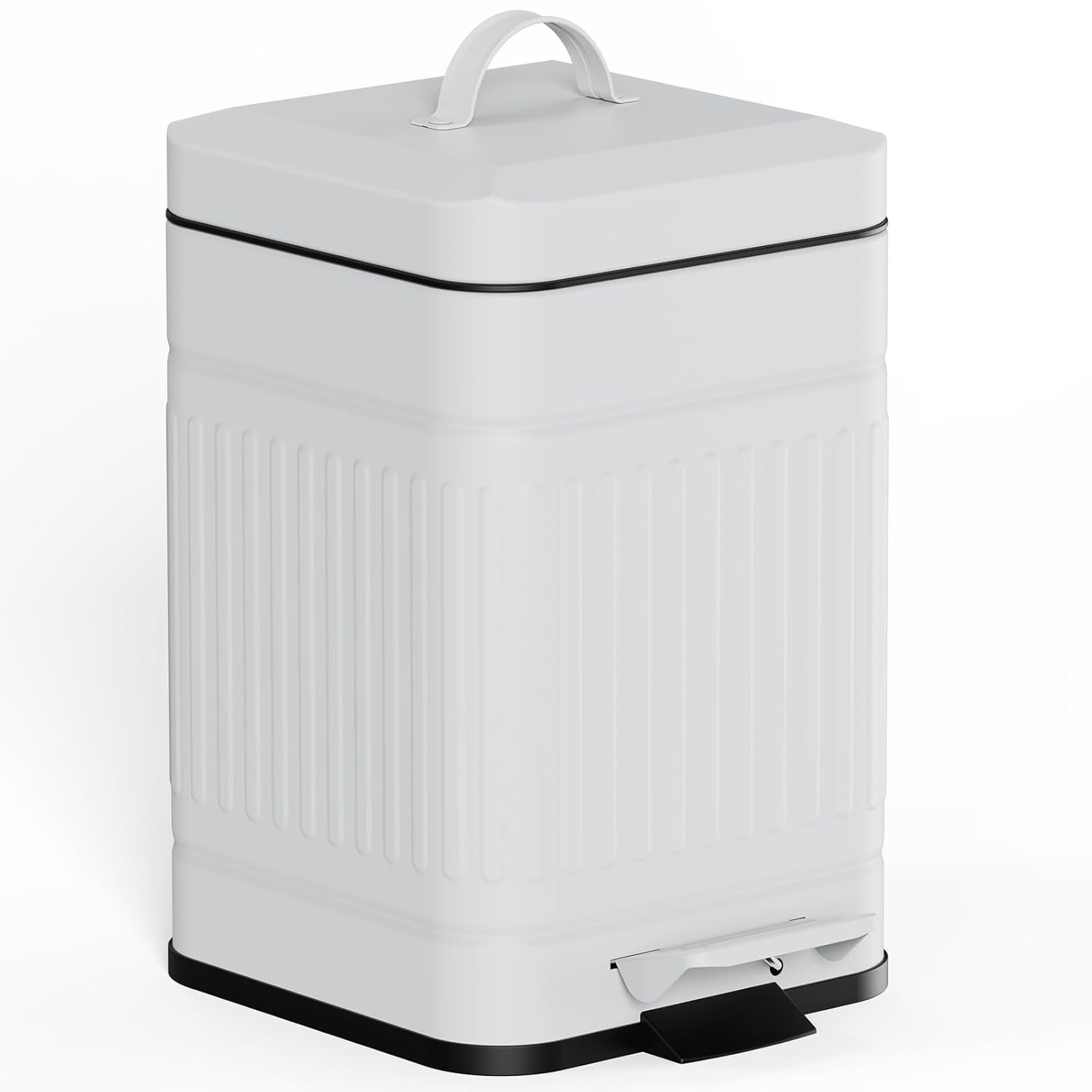 CEROELDA Small Trash Can with Lid-5L/1.3 Gal, Stainless Steel Outdoor Dog Poop Garbage Can-Farmhouse Retro Metal Waste Bin w/Step Pedal for Bathroom Bedroom Office-Soft Close-White
