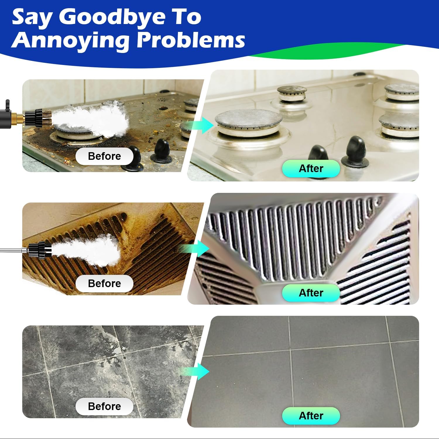 - High Temperature Steam Cleaner - This pressurized steam cleaner has powerful 2500 watts, it can generate 230°F high temperature steam, which can easily remove stubborn oil stains and stains. The high temperature steam cleaner is easy to operate and deep clean, it can well meet your different daily cleaning needs.