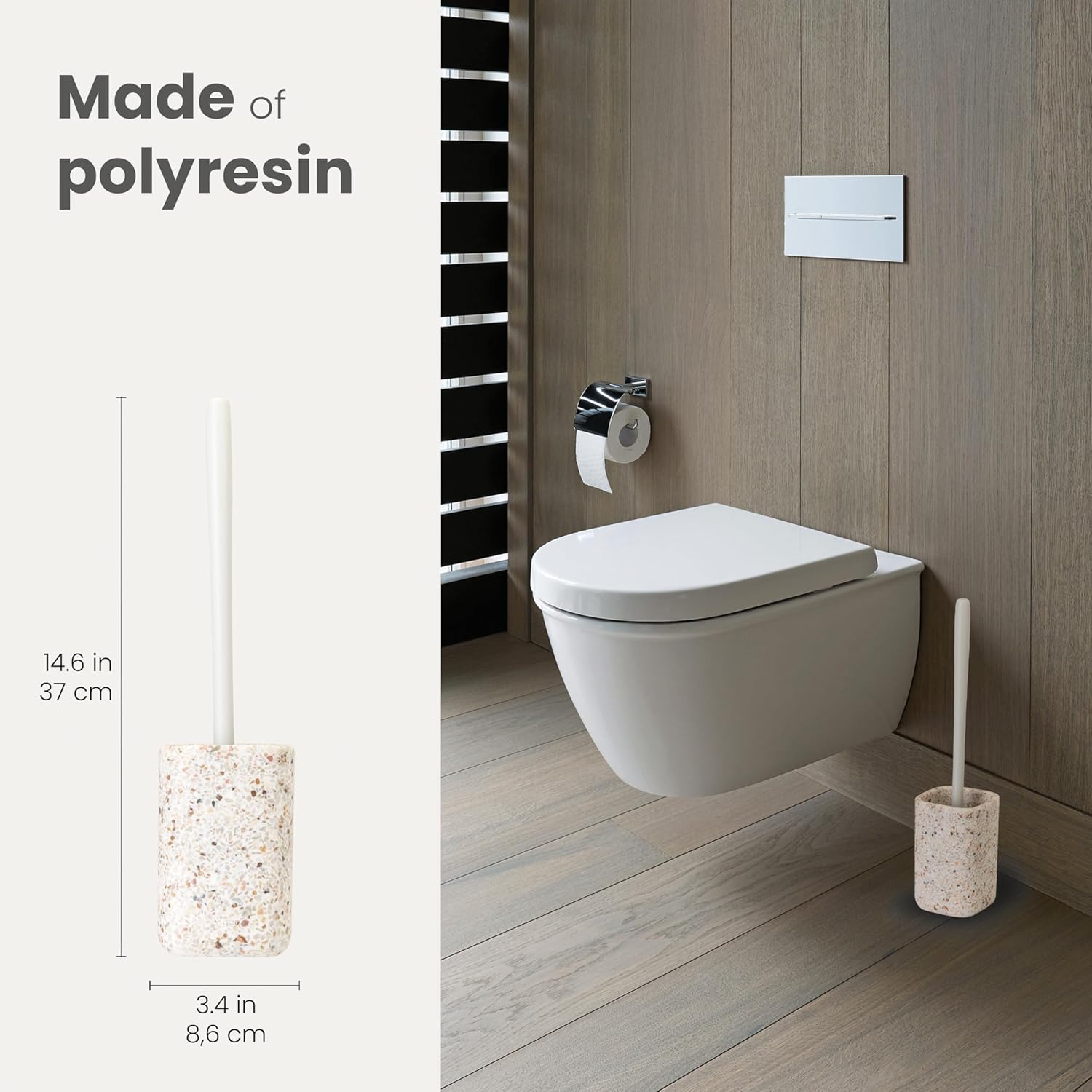 Vigar Zense Toilet Brush and Holder Set, Toilet Bowl Brush with Polyresin Stone Holder, Bathroom Sets for Bathroom Decor and Accessories, Terrazzo