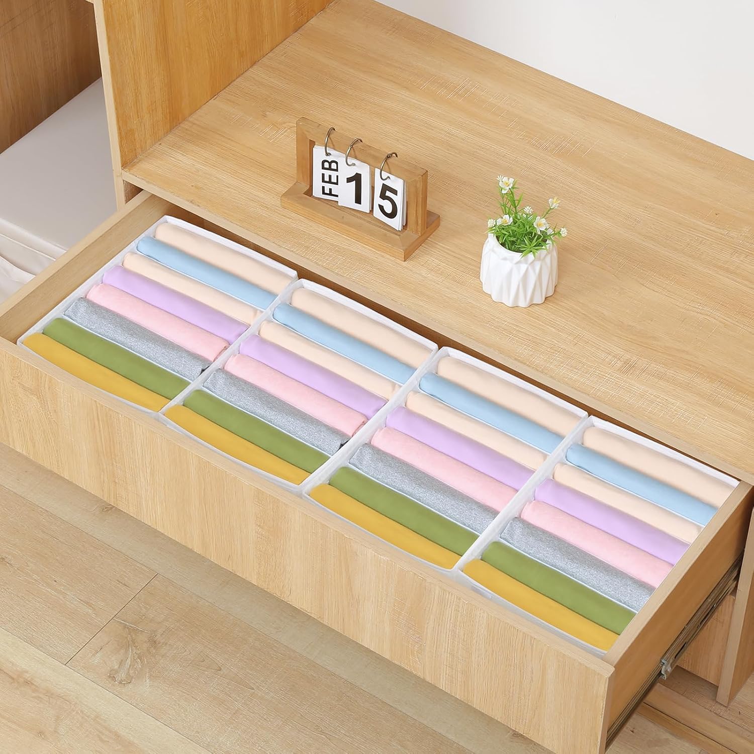 - 👕8 CELLS T-SHIRT ORGANIZER-Each clothes drawer organizer is divided into 8 separate cells. One cell for one item makes you see things at a glance, which can not only keep your closet clothes neat and organized, but also saving your precious time on picking what your want.