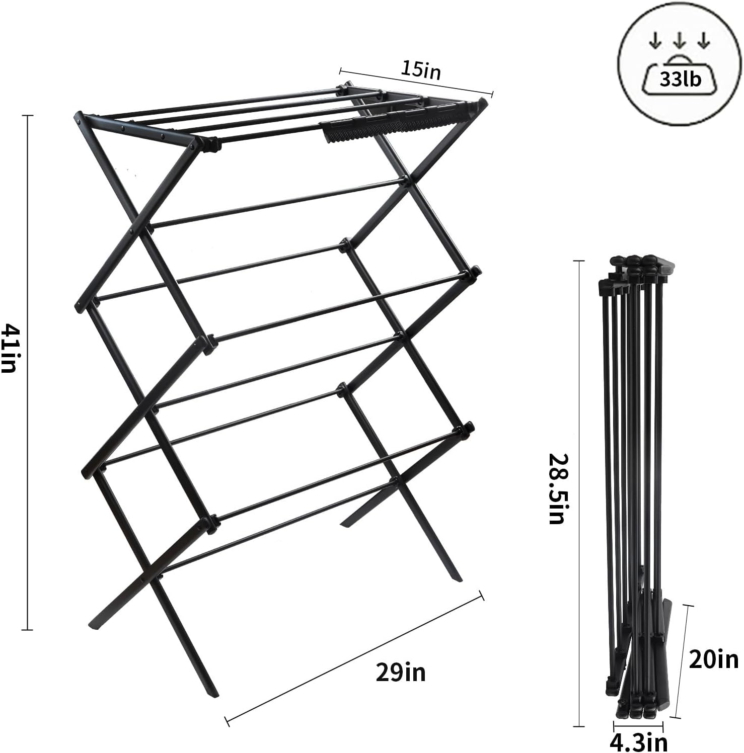 - Ample Drying Space: Wide layers of drying space will provide you with enough space to meet your daily needs. This large folding drying rack easily handles anything from sweats & jeans to beach towels, blankets & bedding