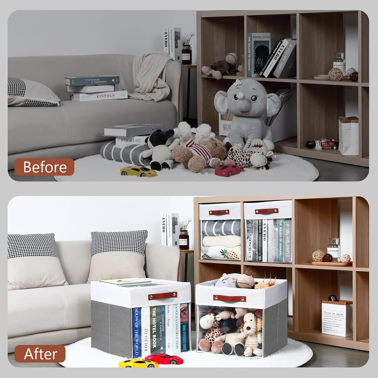 - 【Clear Cube Storage Bins】We have made an upgrade to the 11 inch cube storage bin by incorporating a clear window design. This feature enables you to easily and precisely view the cubby storage bins stored inside. There will be no need to dig through the contents anymore.This will improve the efficiency of your search, which in turn will help you save valuable time and effort.