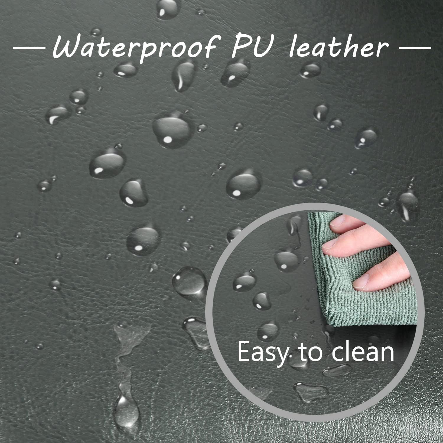 Adeco Bonded Leather Square Tufted Cubic Cube Footstool, 18" Height Storage Ottomans, with Lid, Cement Grey